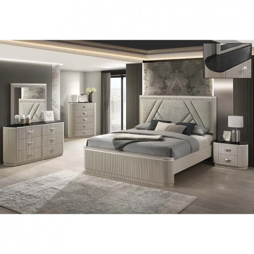 J and M Furniture 17188-K Onyx King Bed Beige Finish Grey Fabric