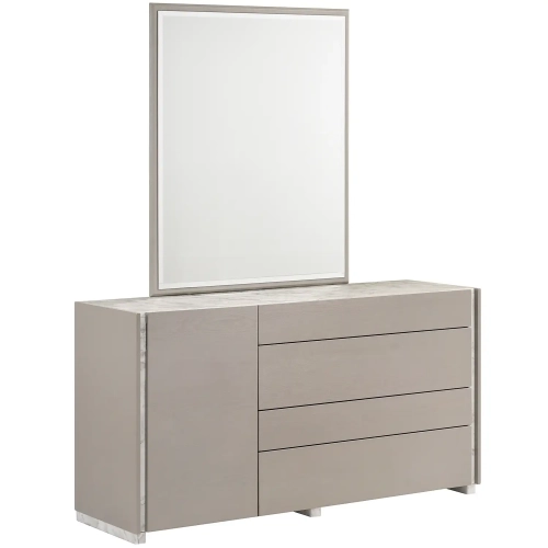 J and M Furniture Pearl Dresser & Mirror in Taupe Finish & White Marble Veneer