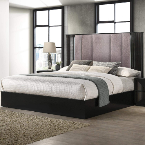 J and M Furniture Rosette King Bed in Black Finish, LED & Tufted Leatherette