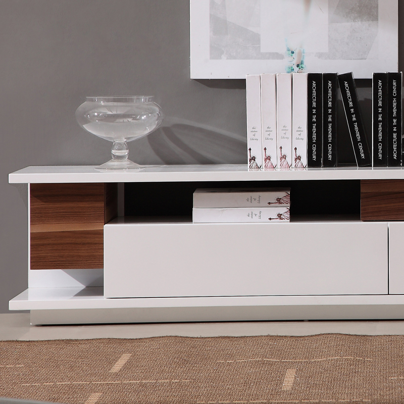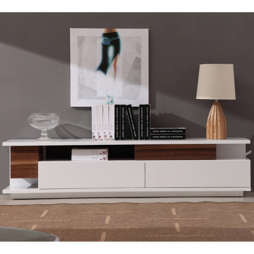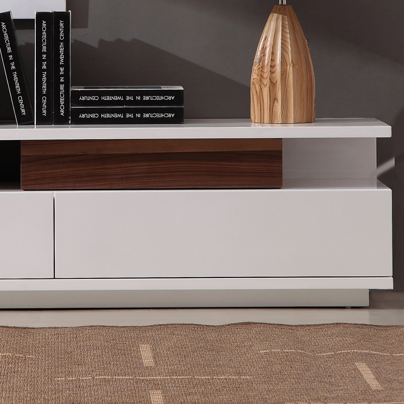 J and M Furniture 71" Contemporary TV Stand in White Lacquer & Light Walnut