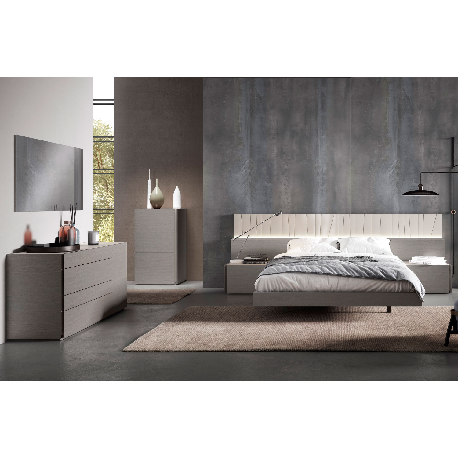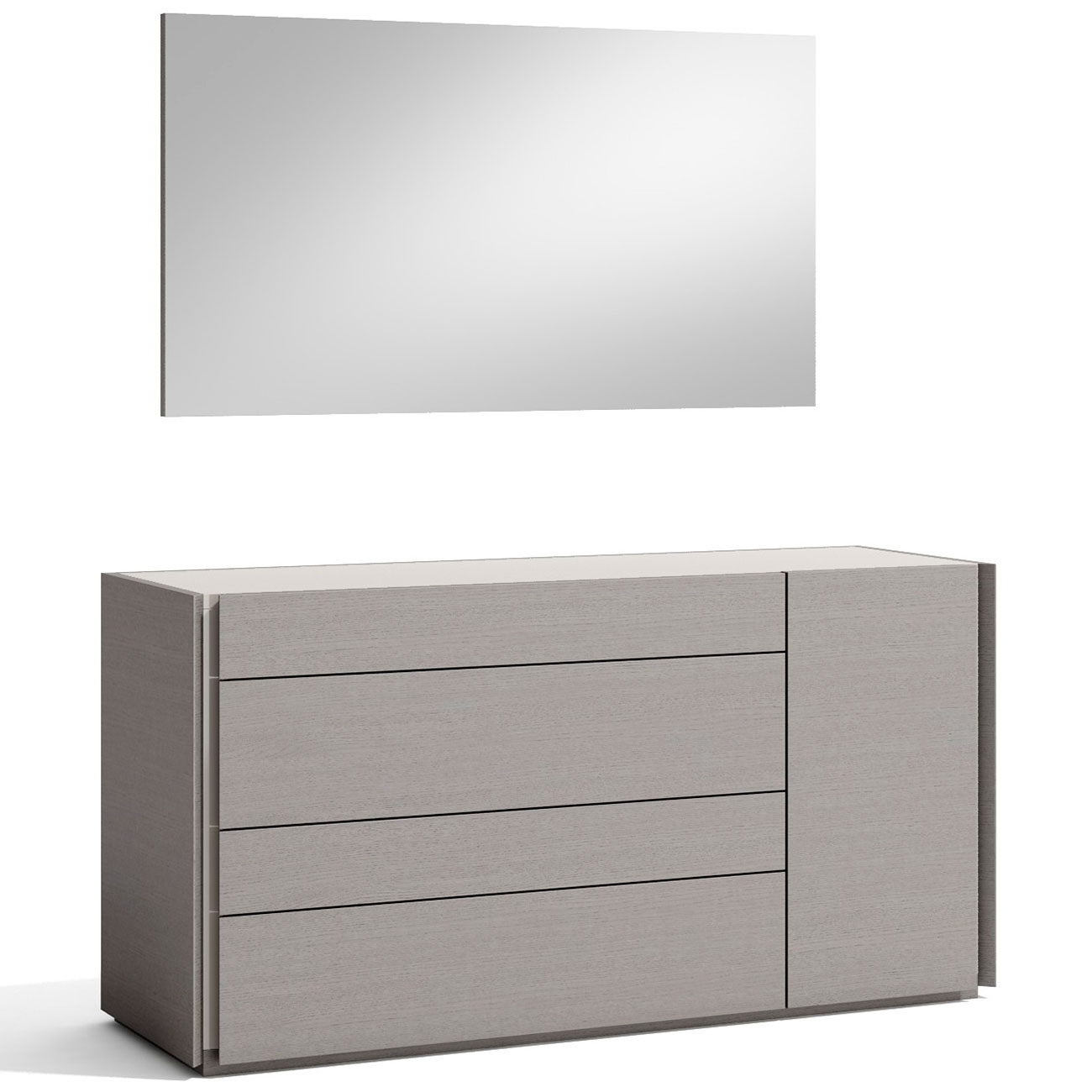 J and M Furniture Porto Dresser & Mirror Set n Grey Wood Veneer & Light Grey Lacquer