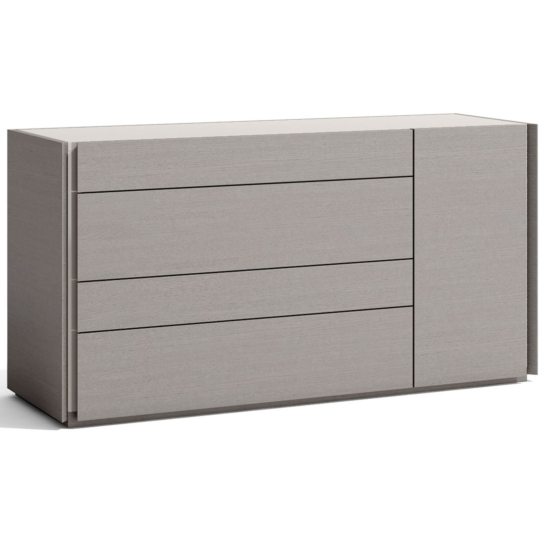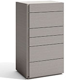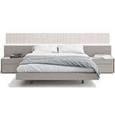 The Porto premium bedroom features an elegant design beautifully mixing a natural light grey lacquer finish which looks striking against the natural grey wood veneer. The headboard shows off uniquely carved diagonal lines which look spectacular when the built in LED lights featuring a dimmer function are on. The interplay of grey with light grey continues in the left or right night stands, chest, and dresser. As with all of J&M's premium collection bedrooms the case goods come equipped with soft closing tracks by Blum, a world-renowned German manufacturer that sets the standards for the finest quality furniture hardware.