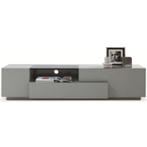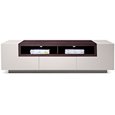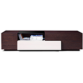 One of our best selling TV Units in an exciting new white lacquer & walnut finish! This Entertainment TV Center offers a contemporary look with a clean uncluttered design and functionally multipurpose structure. Crafted from durable wood, wood products and veneers.