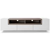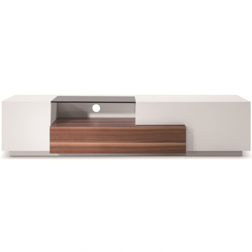 J and M Furniture 70" Contemporary TV Stand in White Lacquer & Walnut