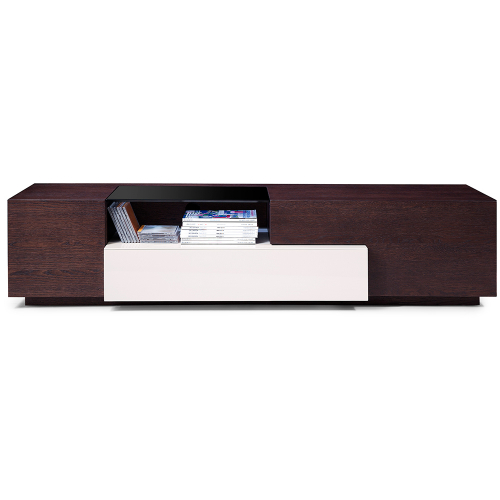 J and M Furniture 70" Contemporary TV Stand in Brown Oak & Grey Lacquer