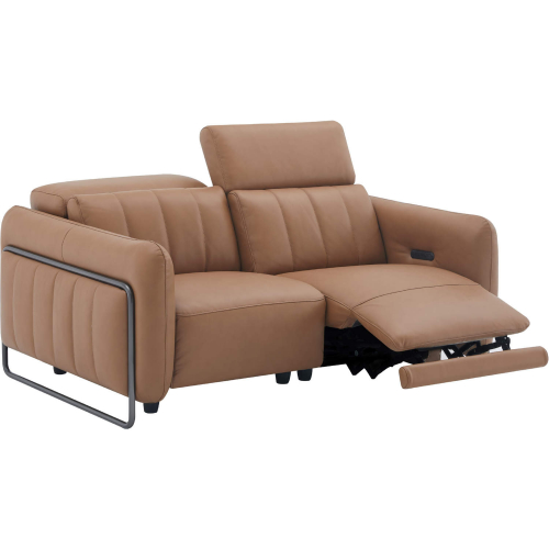 J and M Furniture 17889-L President Power Recline Loveseat Charging Cognac Brown Top Grain Leather