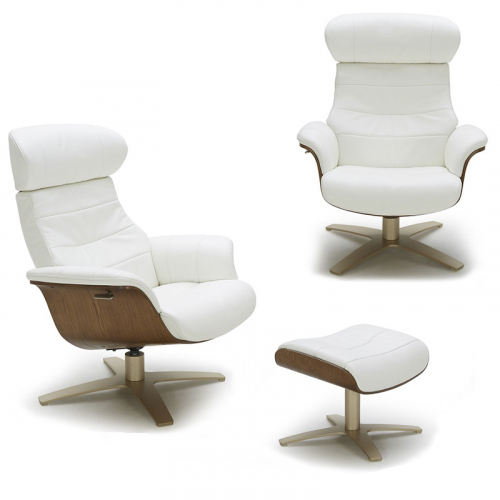 J and M Furniture Karma Ottoman in White Italian Leather with Walnut Veneer