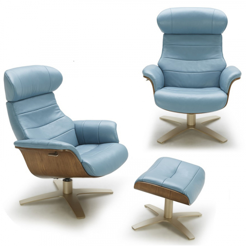 J and M Furniture 180481-O Karma Ottoman Blue Italian Leather w/ Walnut Veneer