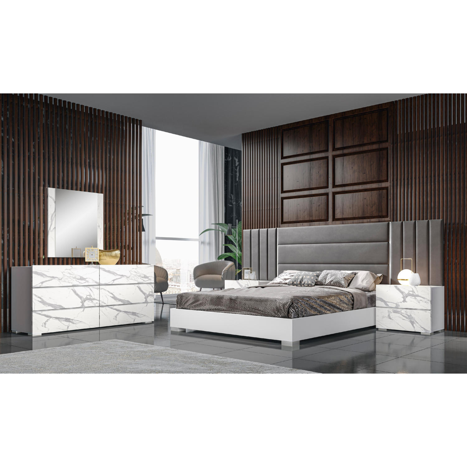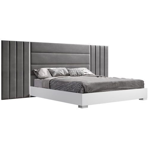 J and M Furniture 18332-K Nina King Bed Oversize Headboard Grey Velvet Chrome Gloss White