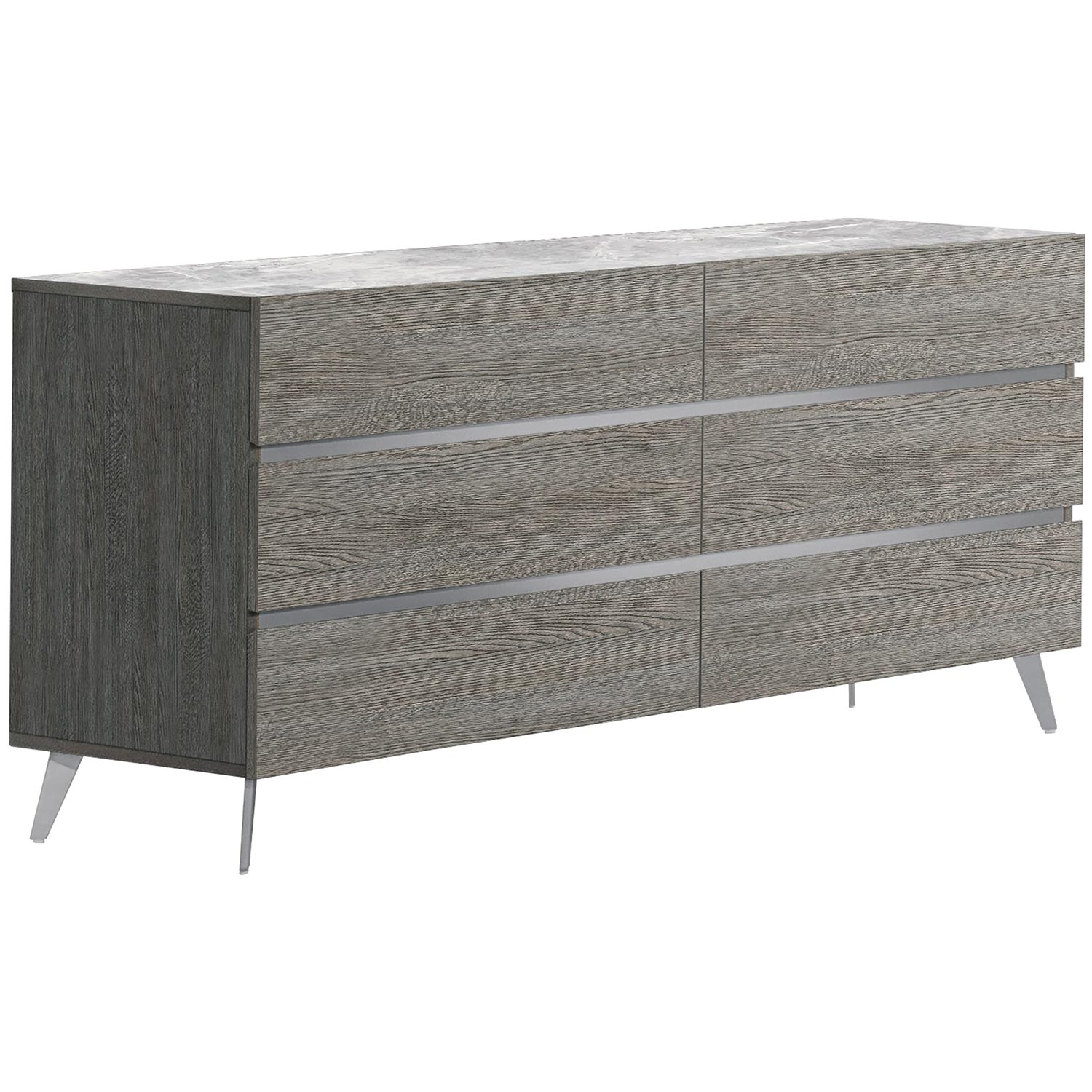 J and M Furniture Victoria Dresser & Mirror Set in Grey Oak Veneer & Grey Marble Look