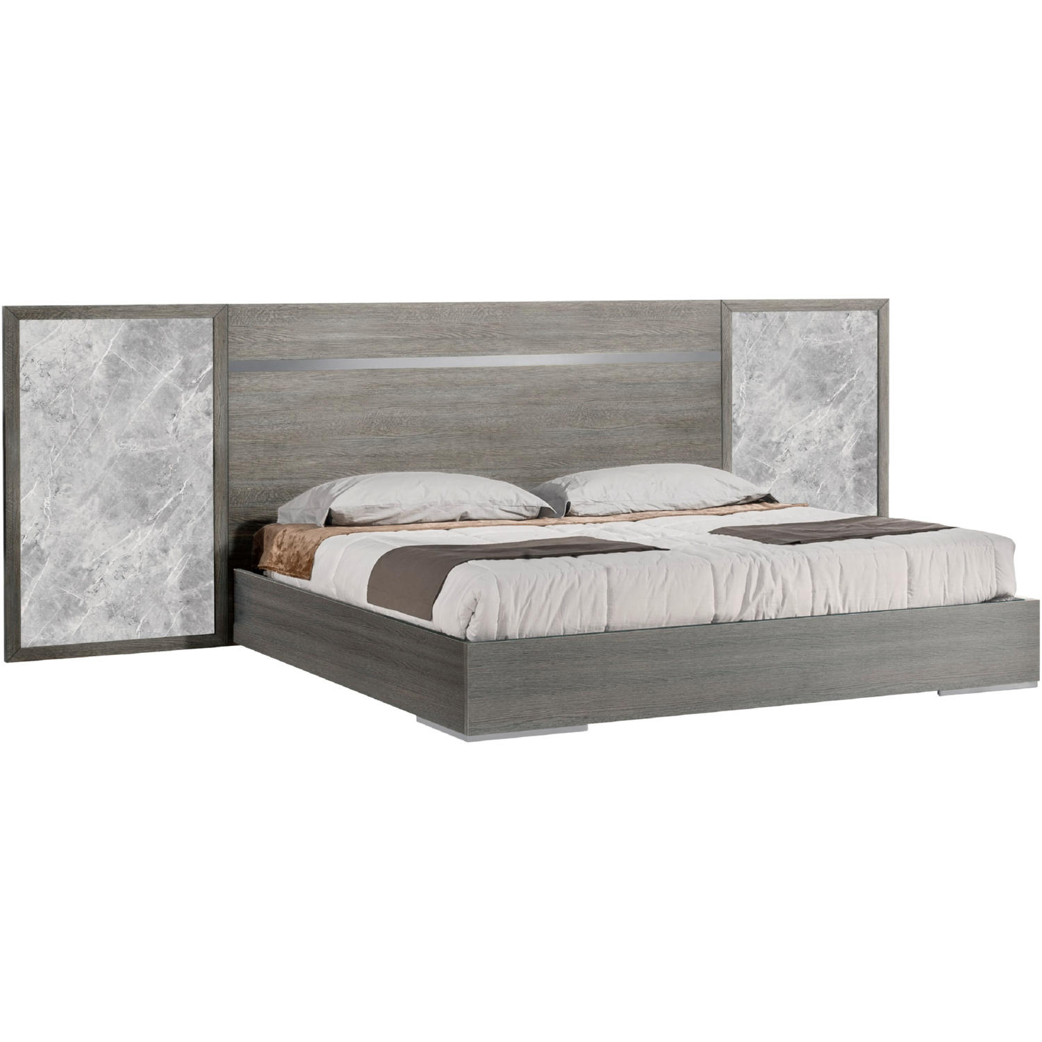 J and M Furniture Victoria Queen Bed in Grey Oak Veneer & Grey Marble Look