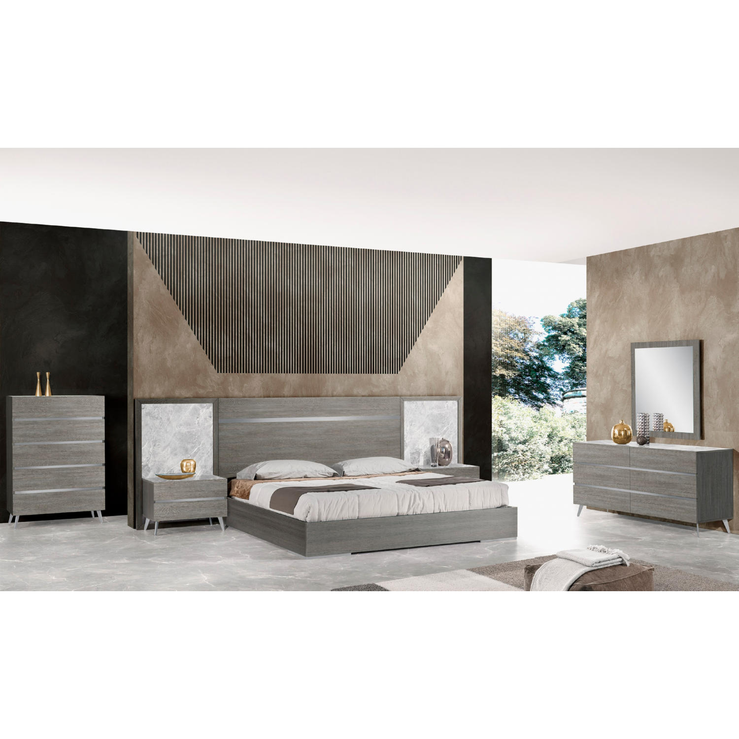 J and M Furniture 18699-Q Victoria Queen Bed Grey Oak Veneer Grey Marble Look