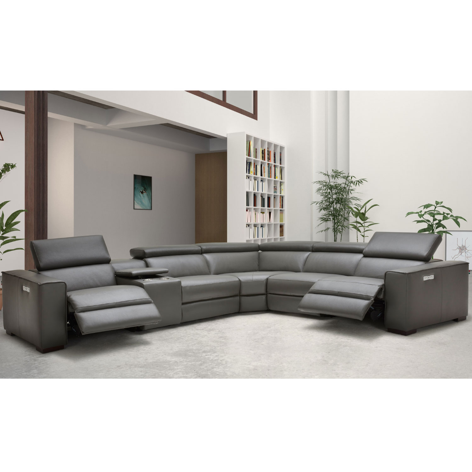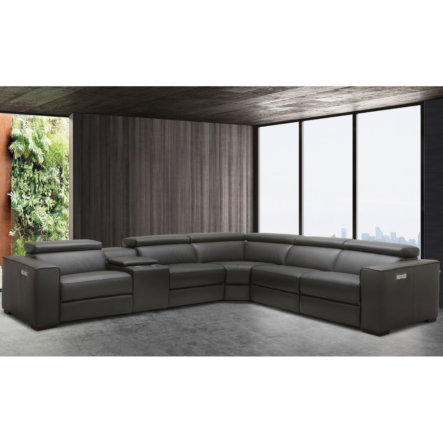 J and M Furniture Picasso 6 Piece Motion Sectional Sofa in Dark Grey Top Grain Leather