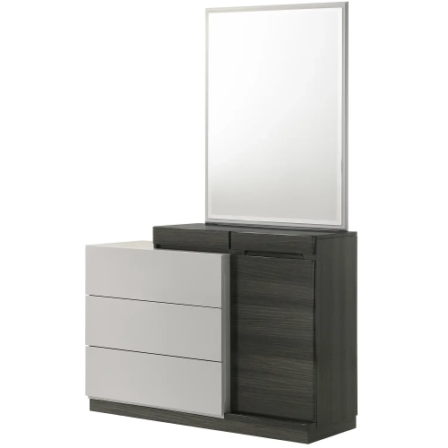 J and M Furniture Cube Dresser & Mirror in Gloss Light Grey & Dark Zebra Grey