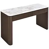 J and M Furniture 459 End Table in Gloss Carrara Gold Ceramic & Brushed Bronze Wood