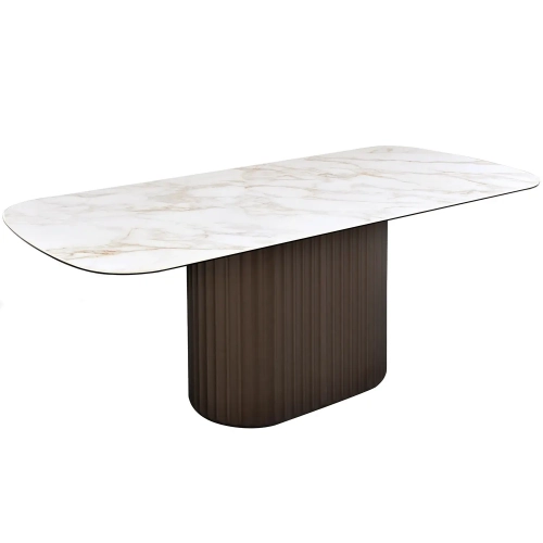 J and M Furniture 459 Dining Table in Gloss Carrara Gold Ceramic & Brushed Bronze Wood