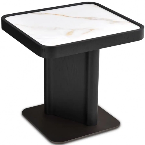 J and M Furniture 459 End Table in Gloss Carrara Gold Ceramic & Black Oak Veneer