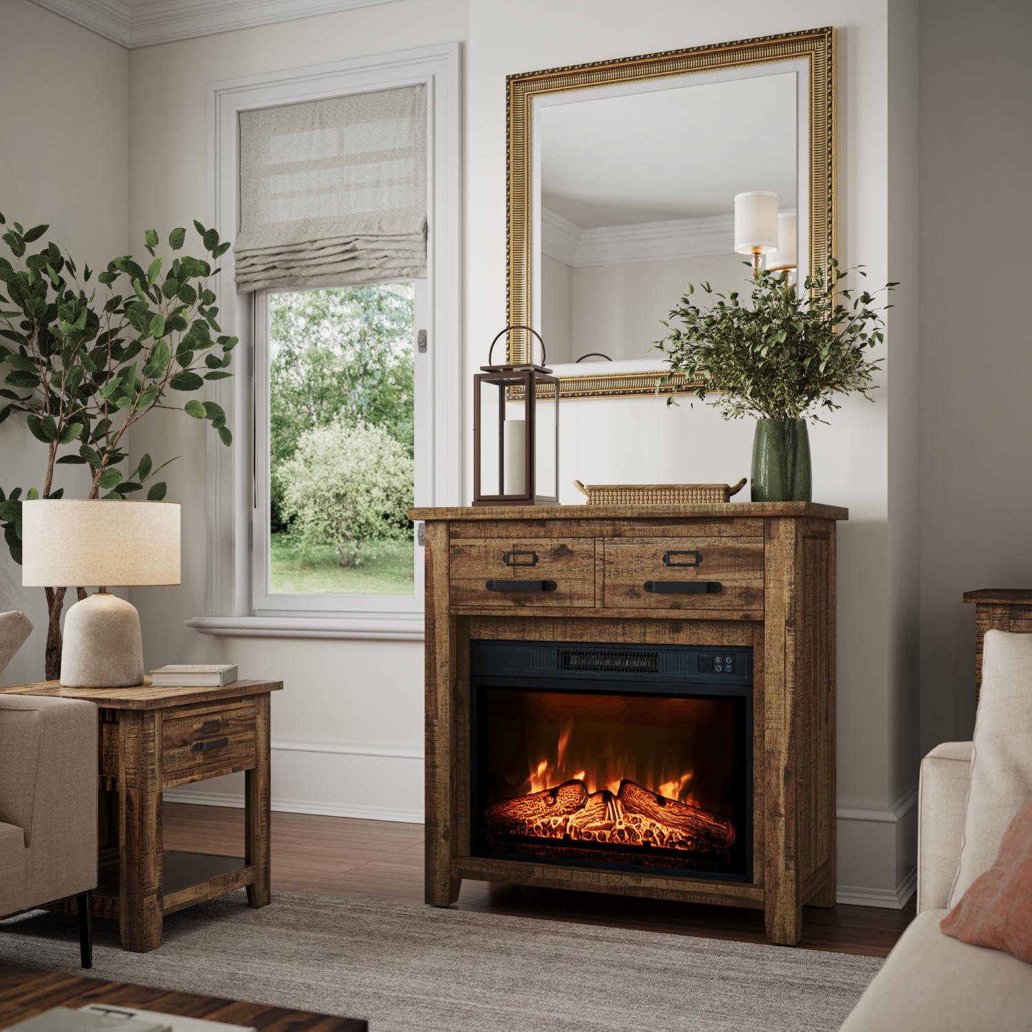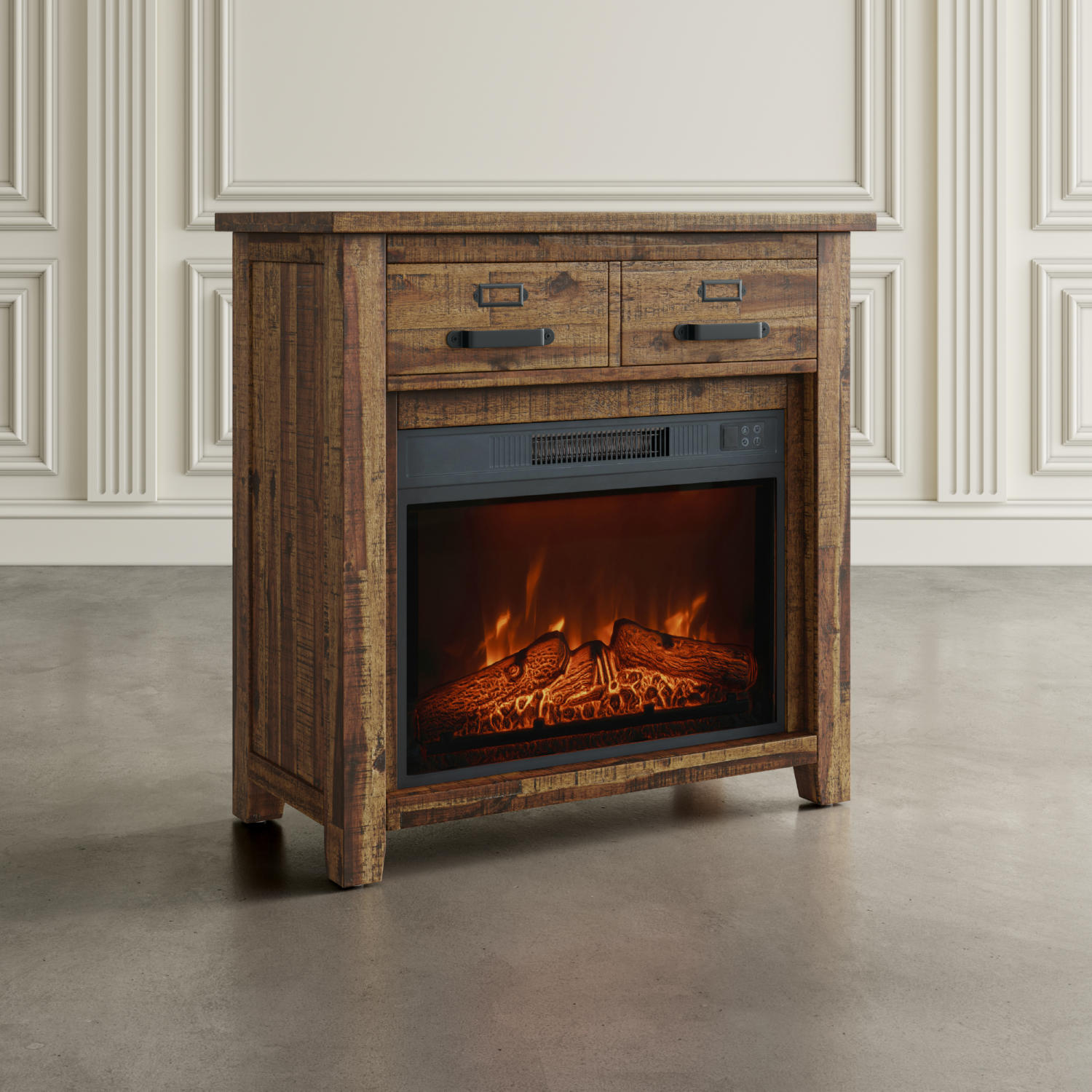 Jofran 1510-FP32 Cannon Valley 32" Console TV Stand Electric Fireplace Distressed Wood