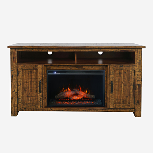 Jofran Cannon Valley 60" Console TV Stand with Electric Fireplace in Distressed Wood