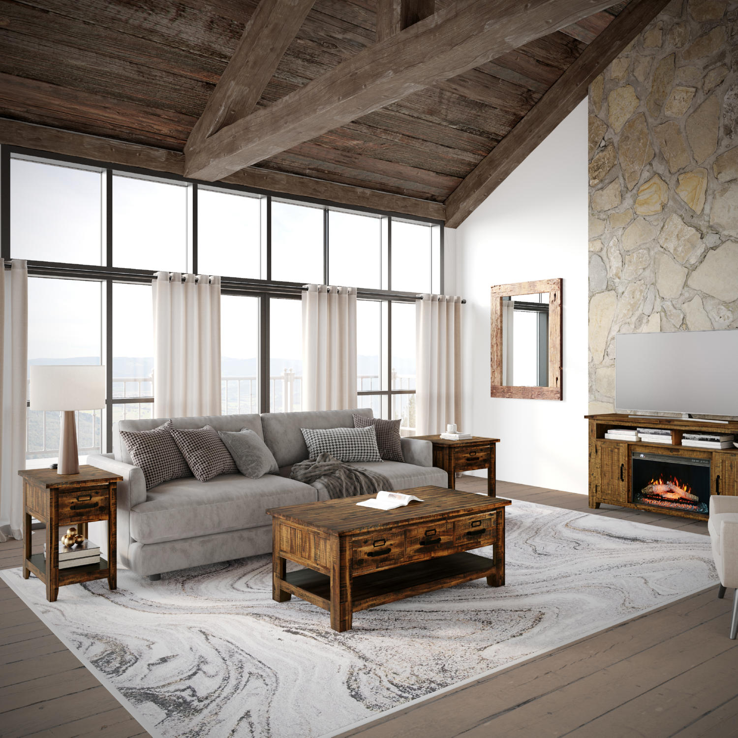 Jofran 1510-FP6032R Cannon Valley 60" Console TV Stand Electric Fireplace Distressed Wood
