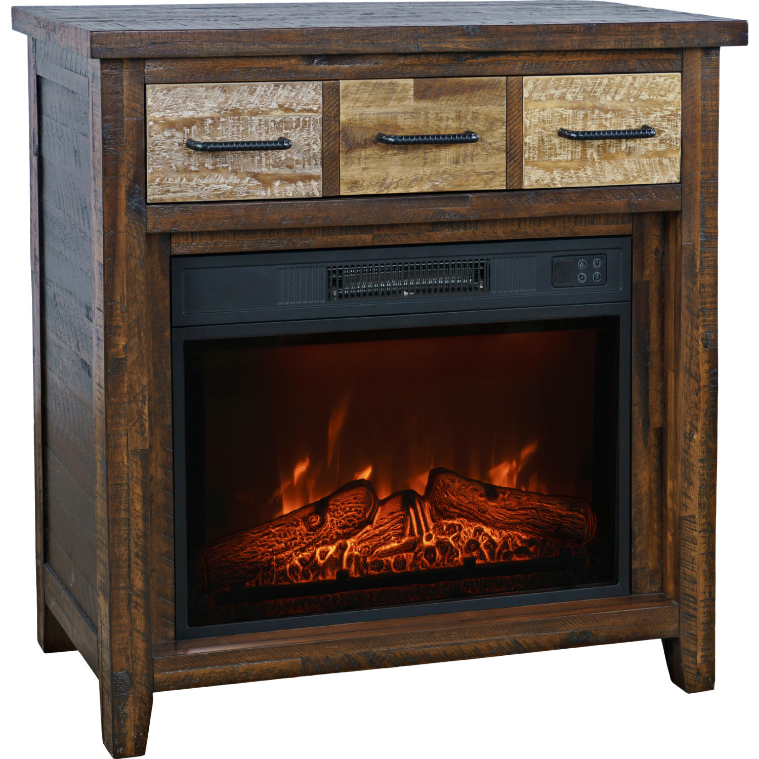Jofran 1600-FP32 Painted Canyon 32" Console TV Stand Electric Fireplace Distressed Multicolor Wood