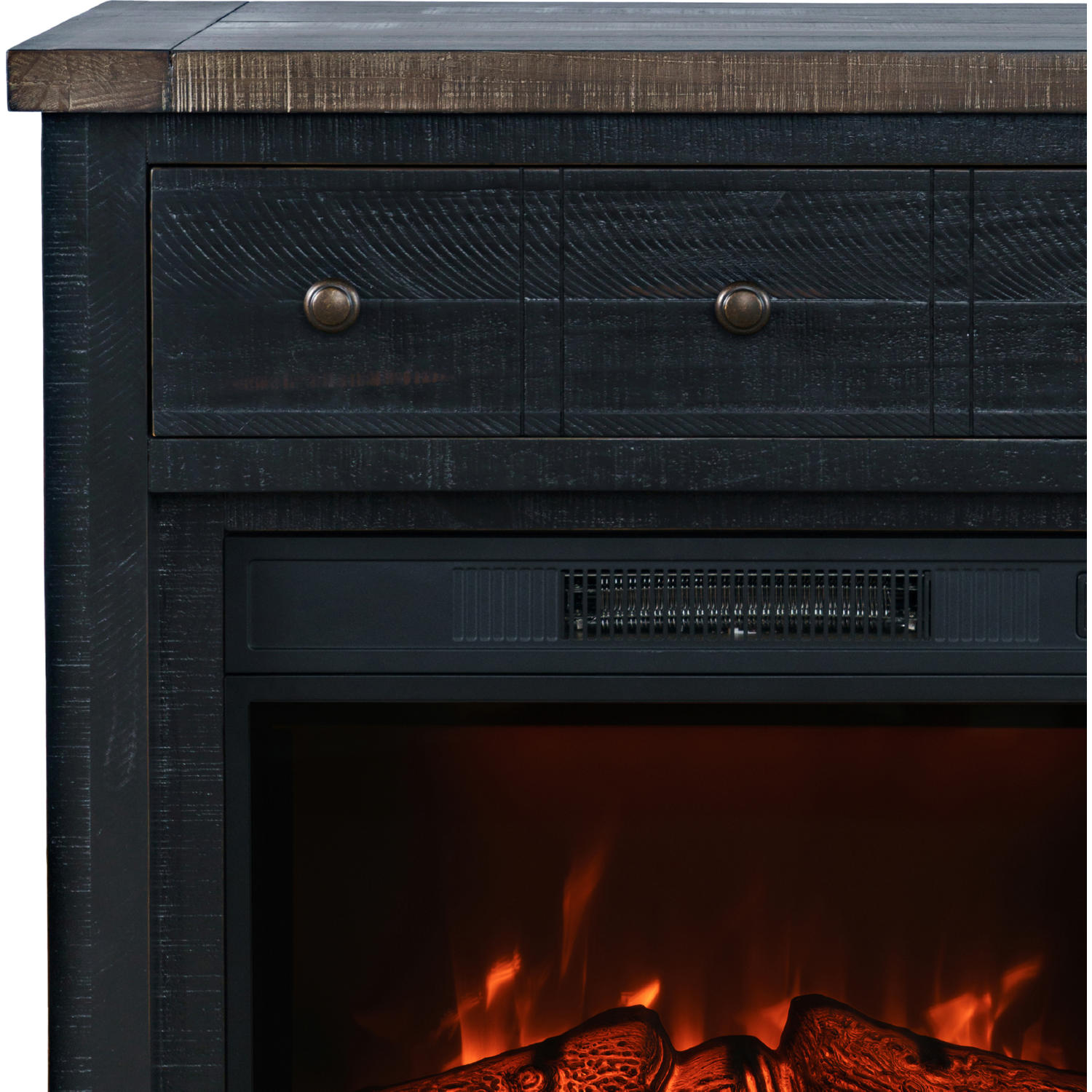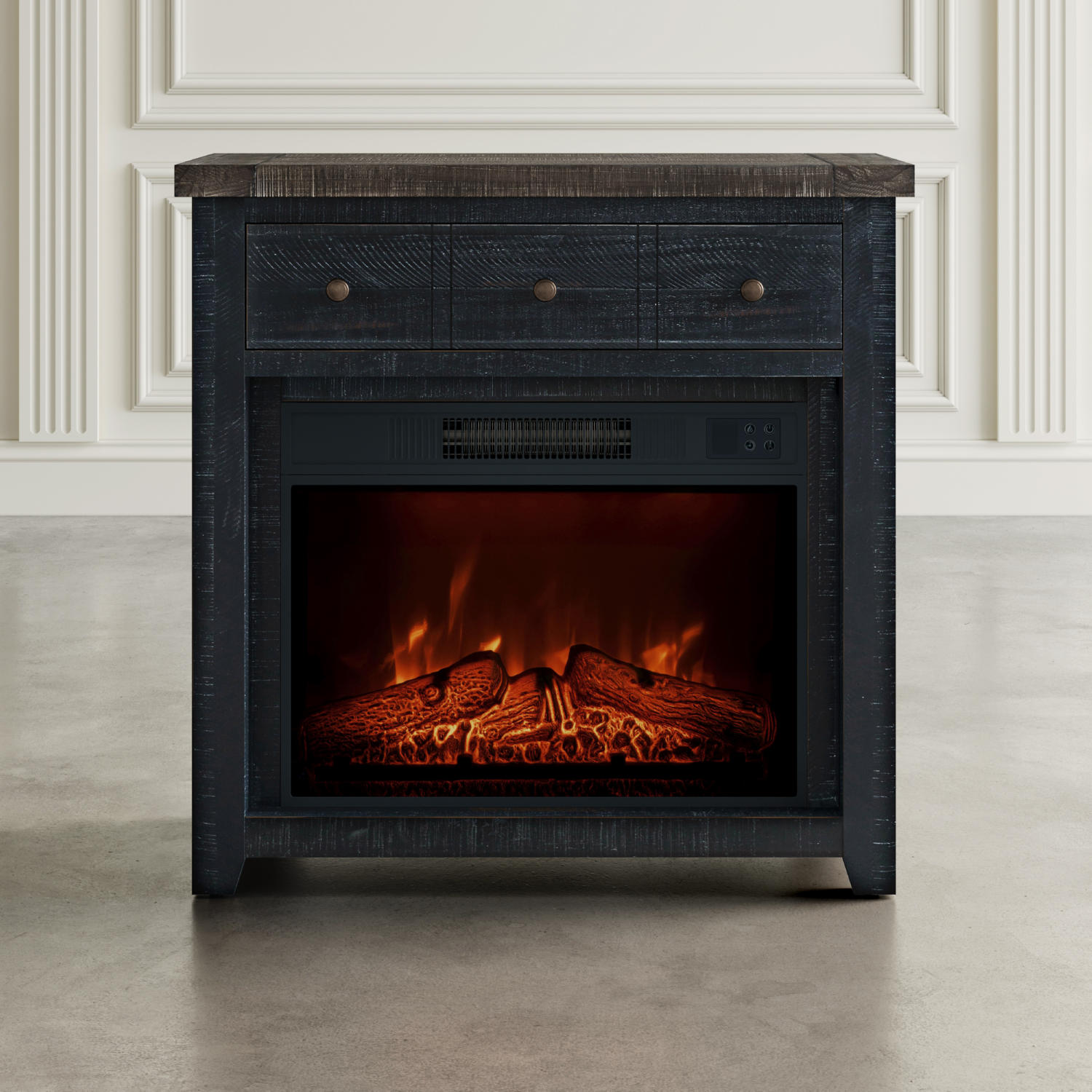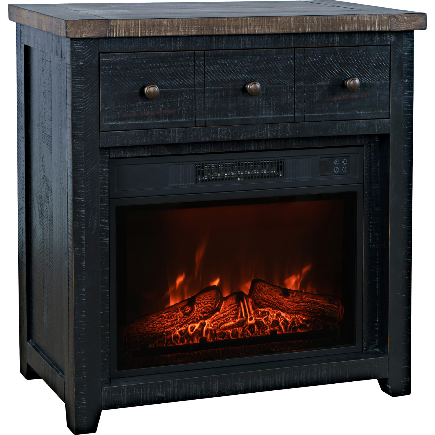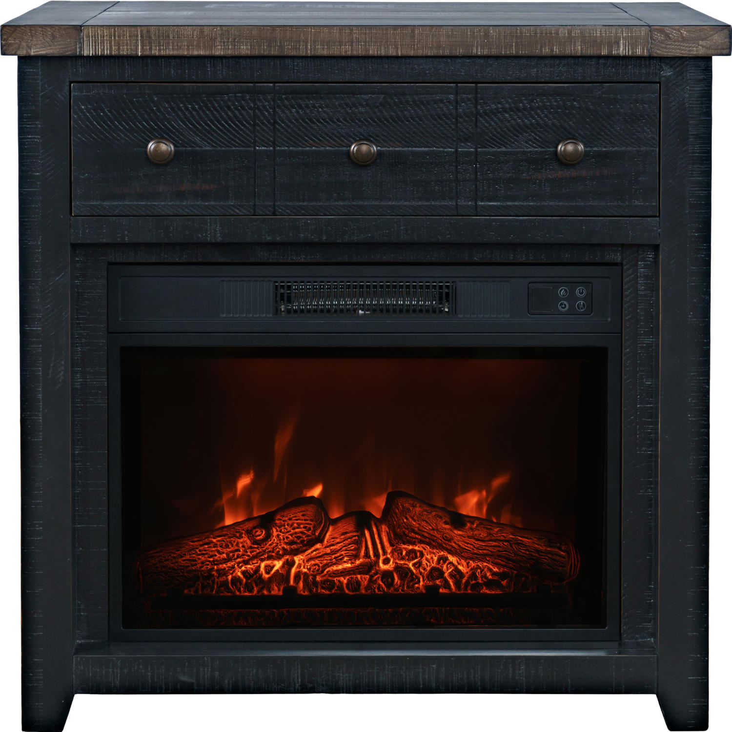 Jofran Madison County 32" Console TV Stand with Electric Fireplace in Antique Black Wood