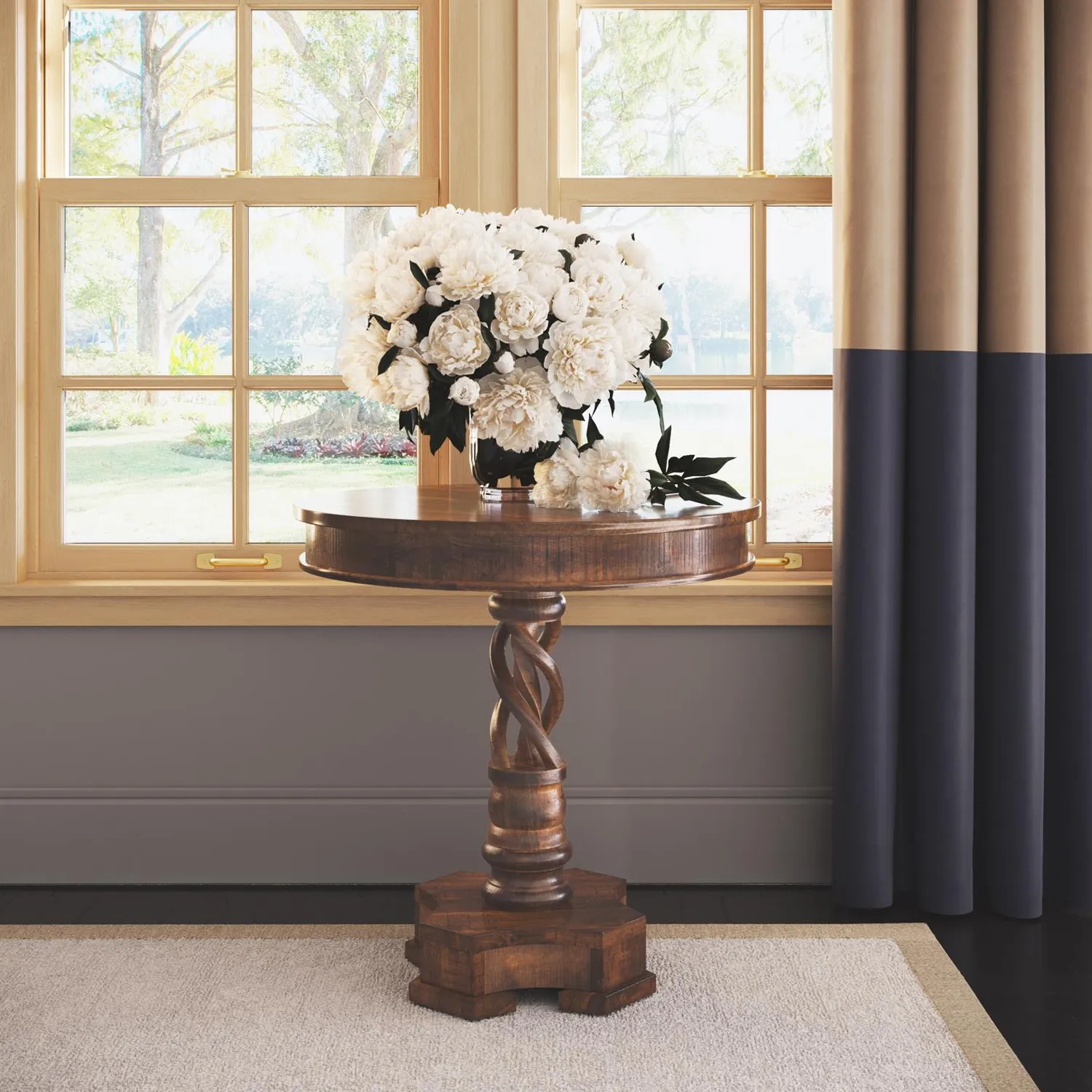 Jofran 1730-58 Global Archive Hand Carved Pedestal Table Solid Mango Wood