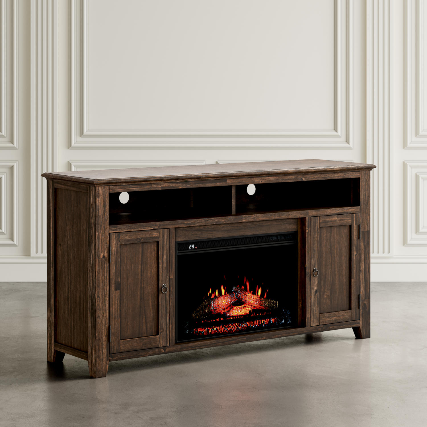 Jofran Bakersfield 60" Console TV Stand with Electric Fireplace in Wire Brushed Wood