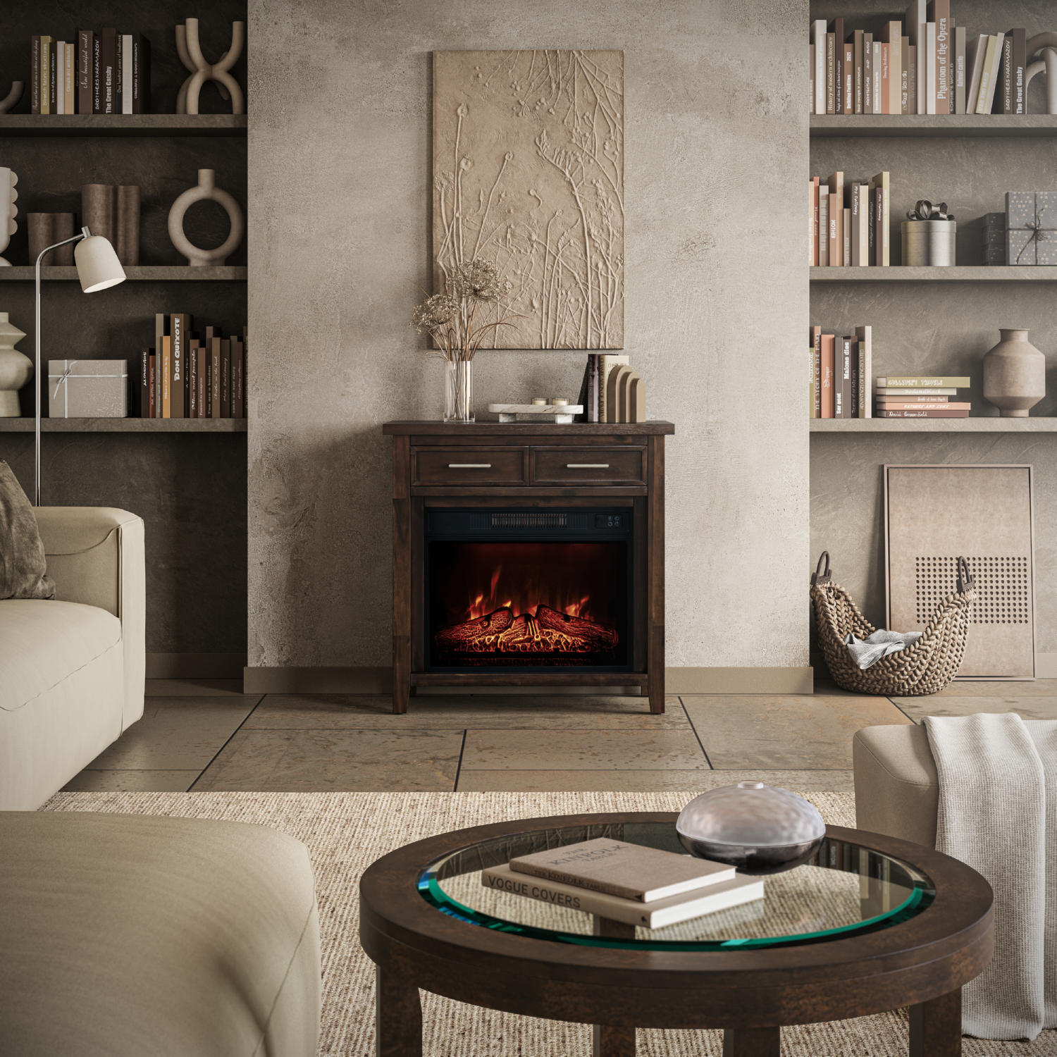 • Includes 5000 BTU Electric Fireplace Insert with adjustable heat settings