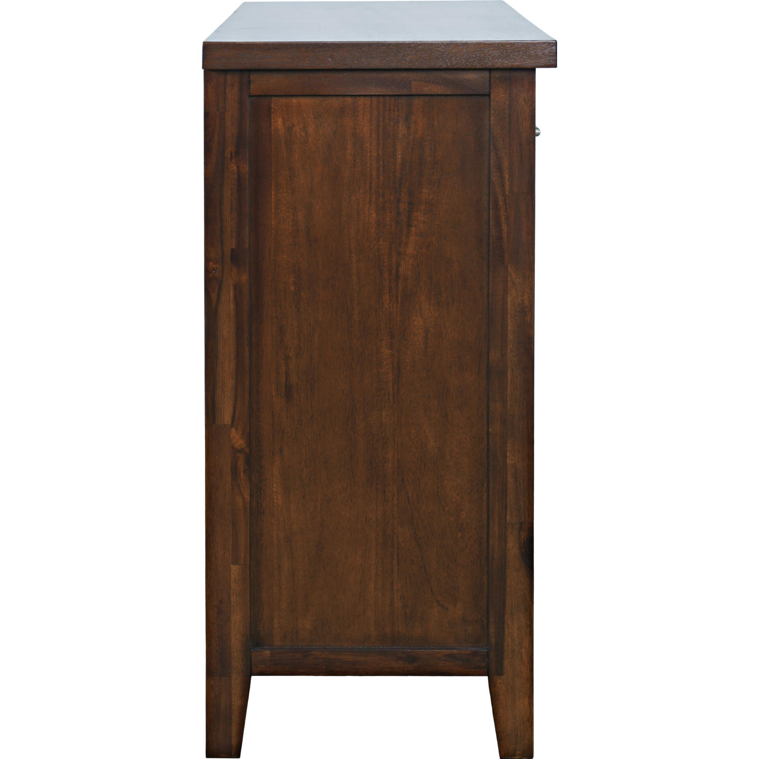 • Crafted from Acacia and engineered wood with beveled glass