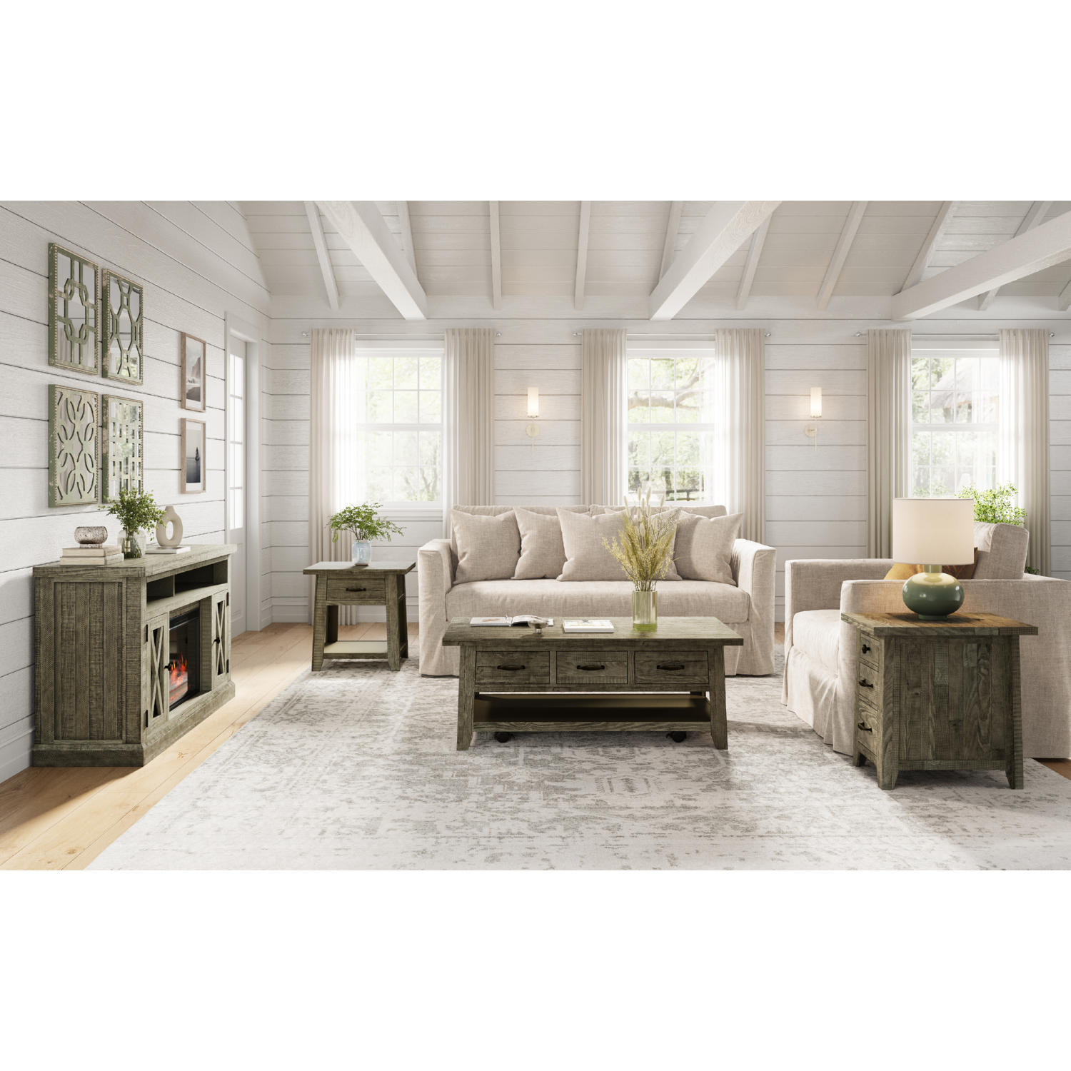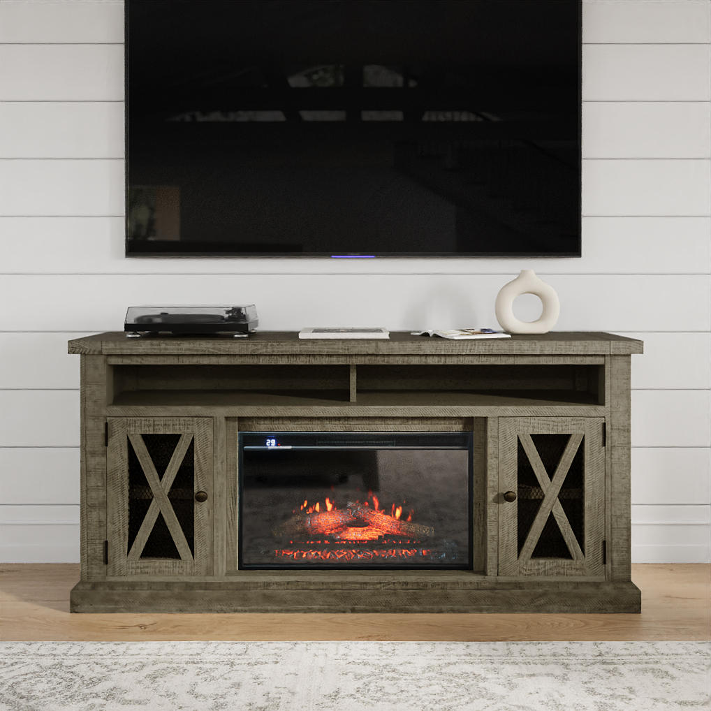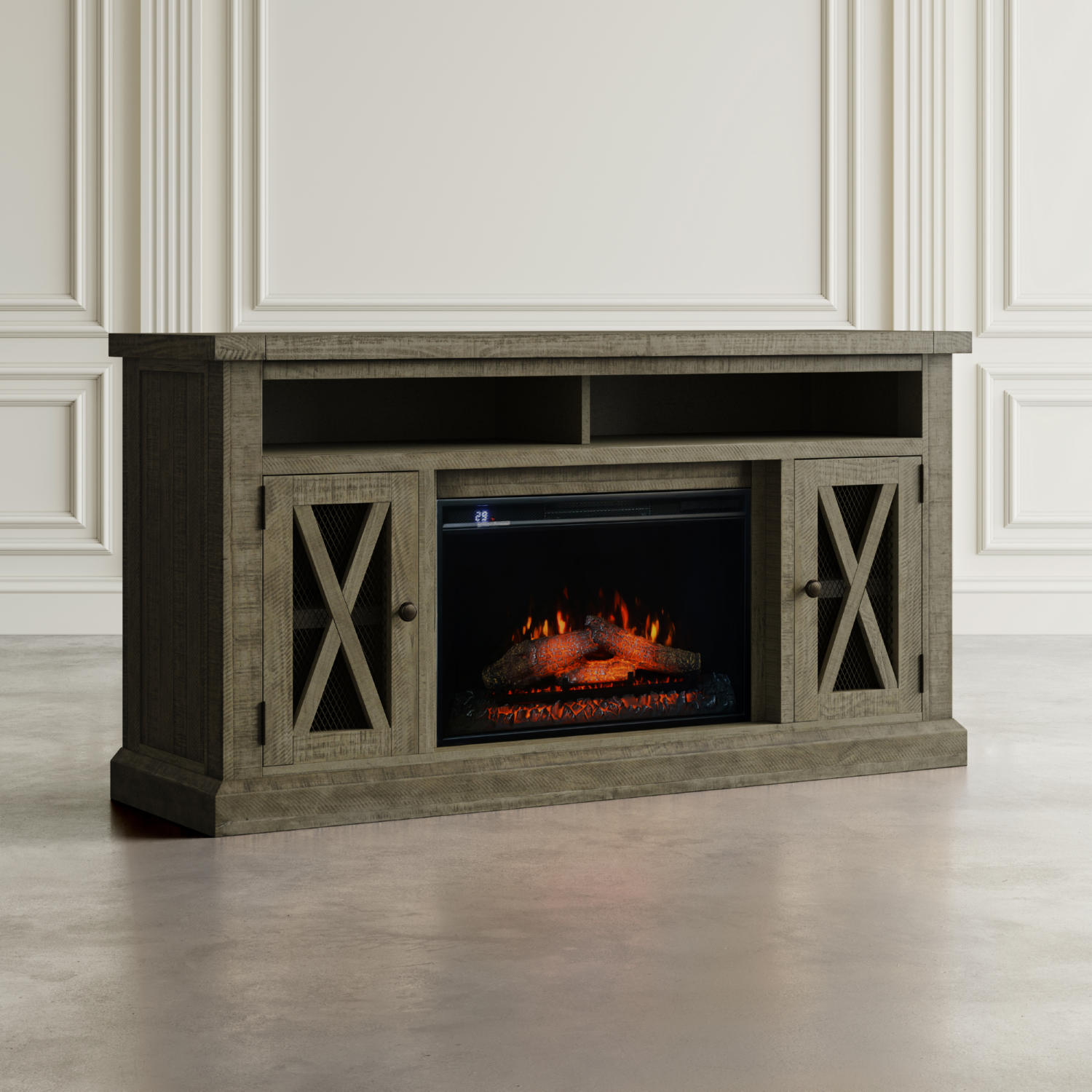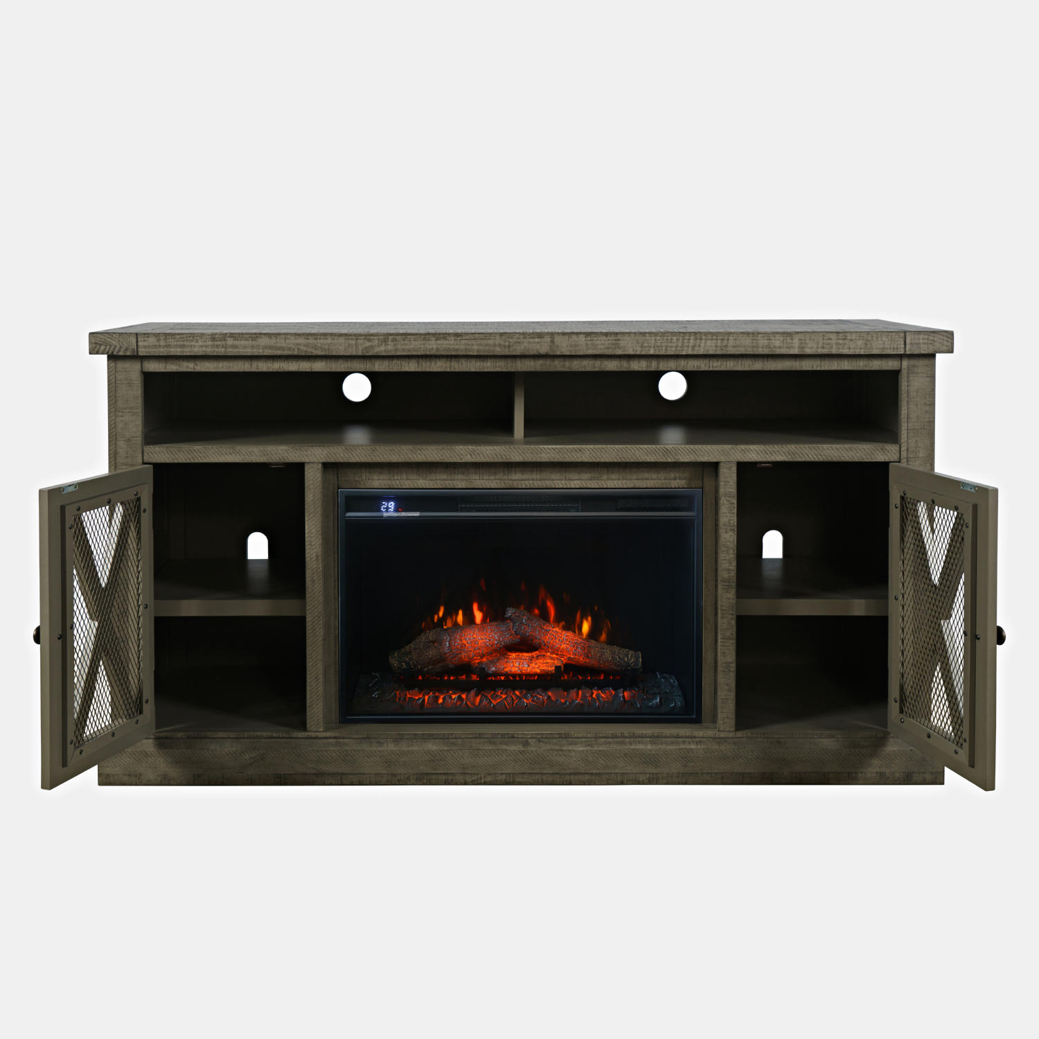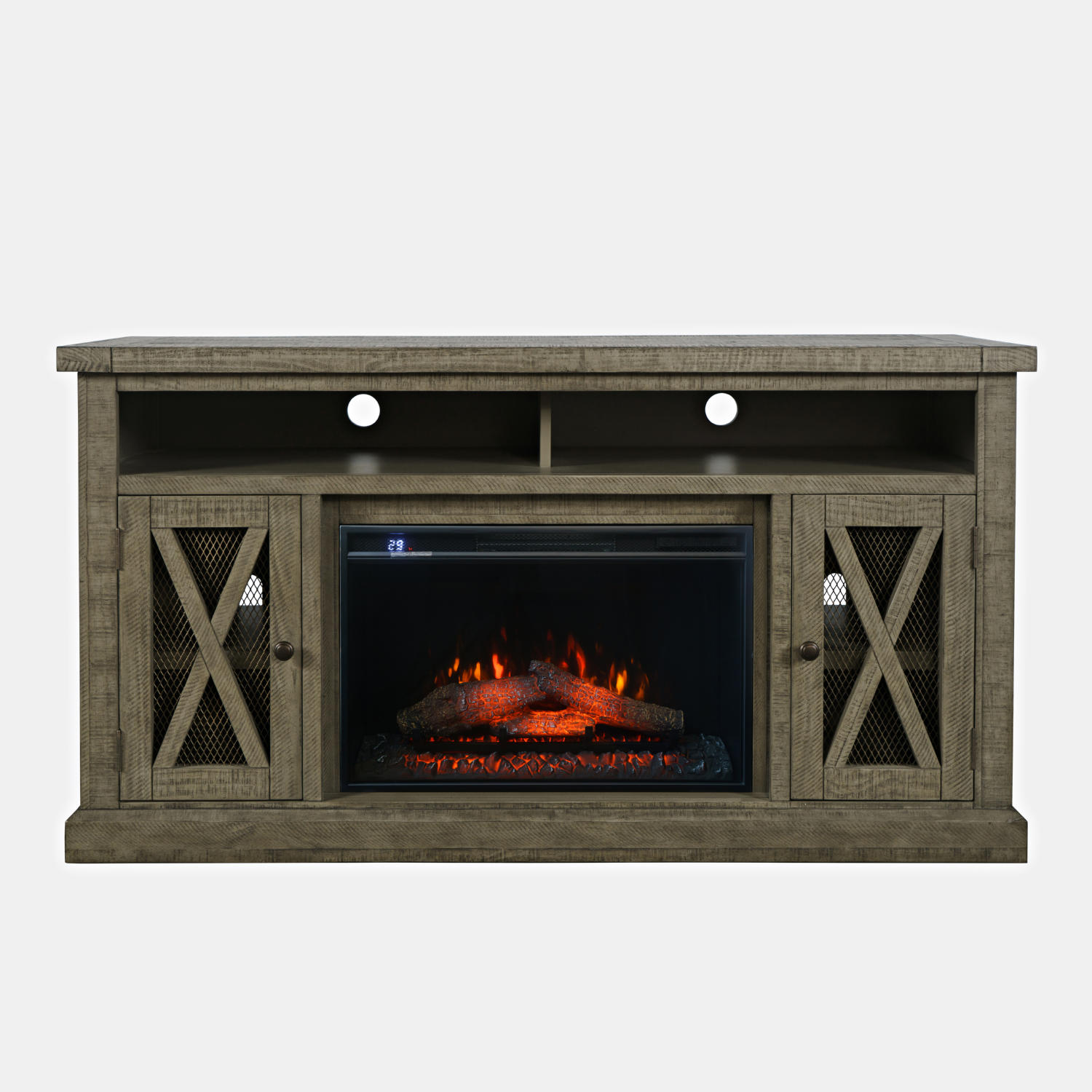 Jofran Telluride 60" Console TV Stand with Electric Fireplace in Driftwood Grey Wood