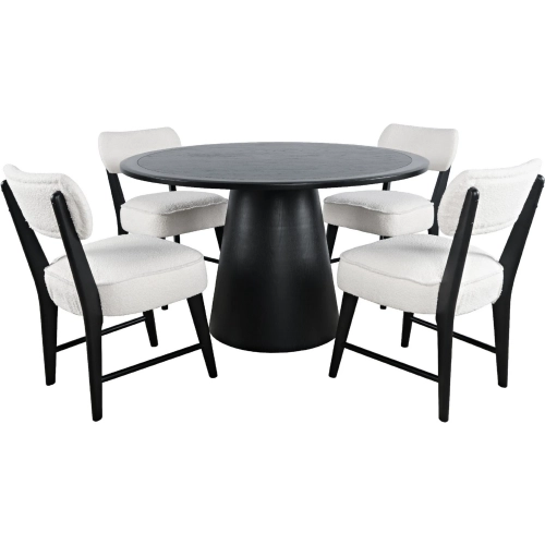 Jofran Nash 5 Piece Pedestal Dining Set in Black Wood & Ivory Boucle