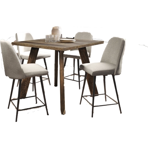 Jofran 2301-SQ42-4MACEYSNAT Reclamation 42" Square 5 Piece Counter Dining Set Wood Brown Fabric