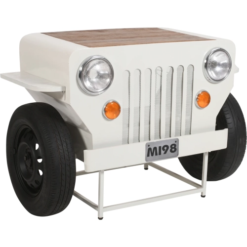 Jofran Glory Days Weekender Vintage Military Vehicle Console Table Bar in White Metal