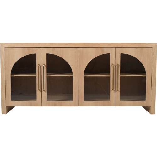 Jofran Archimedes 60" Curved Arch 4 Door Sideboard Cabinet in Oak Brown Wood
