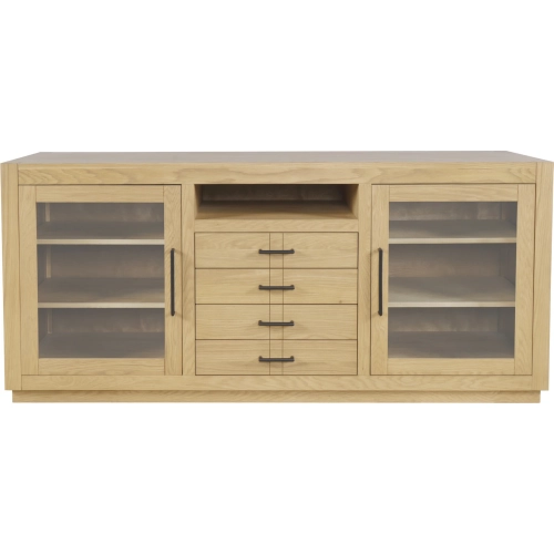 Jofran Auburn Hills 70" TV Stand Media Console in Light Oak Finish Wood & Tempered Glass