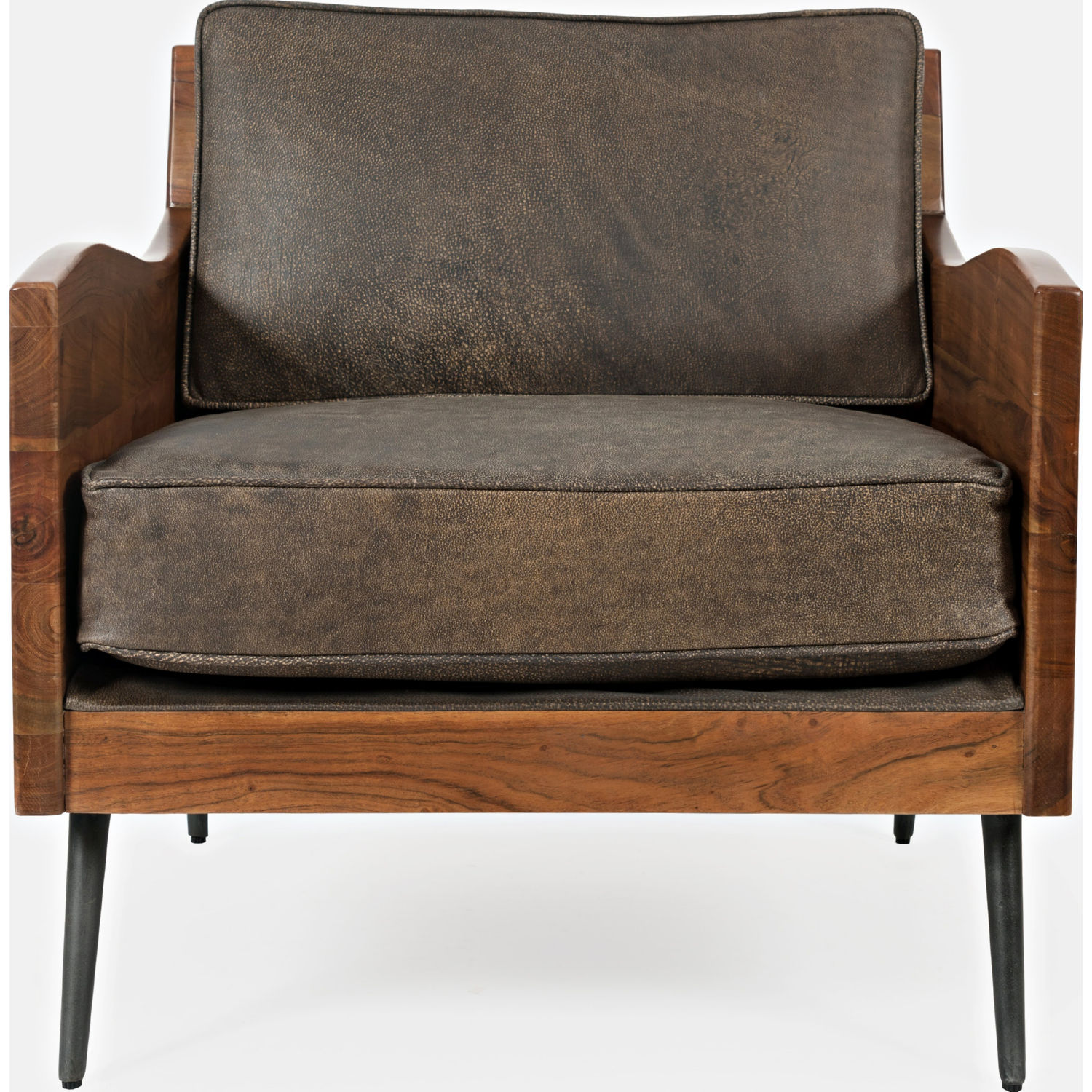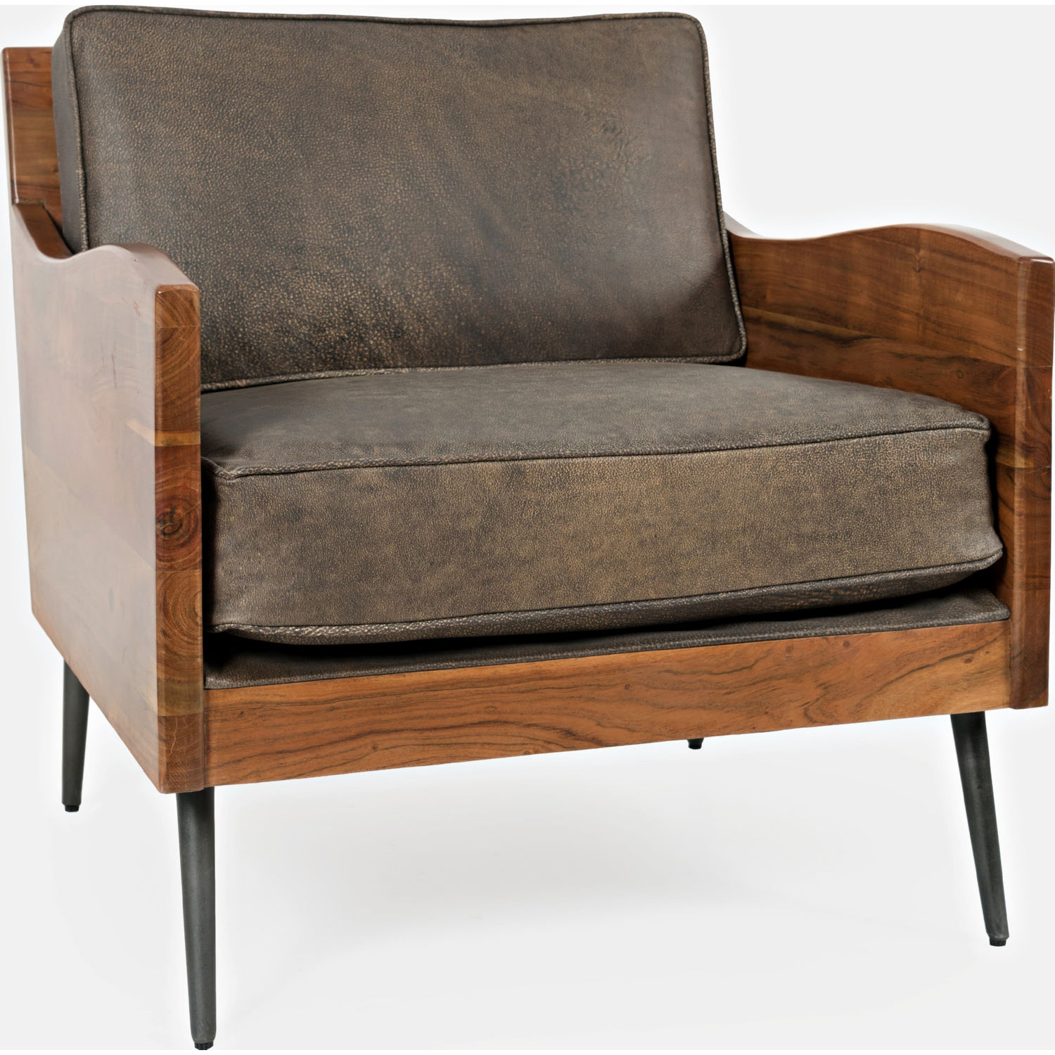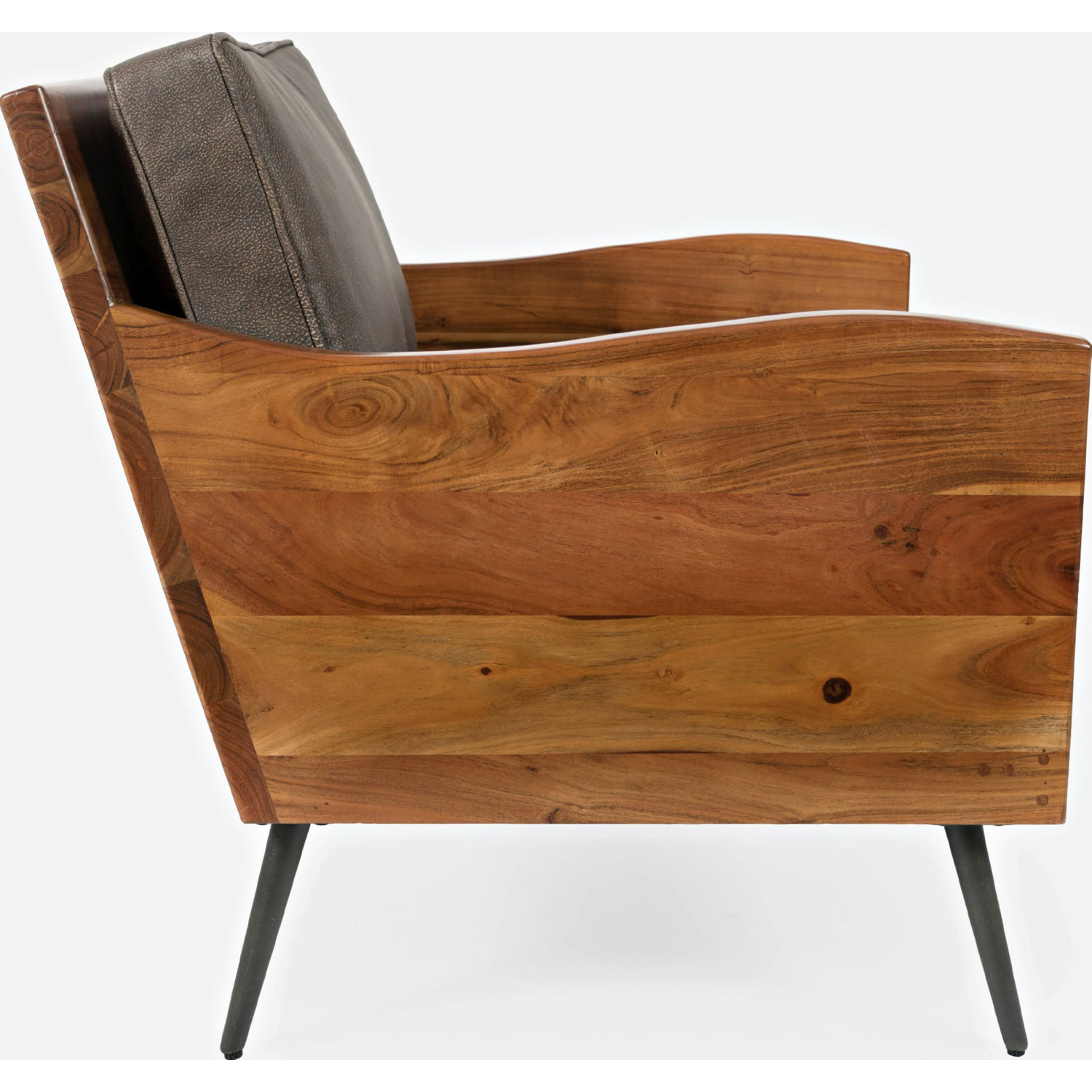 Jofran Karma Accent Chair with Live Edge Wood & Bourbon Brown Leather