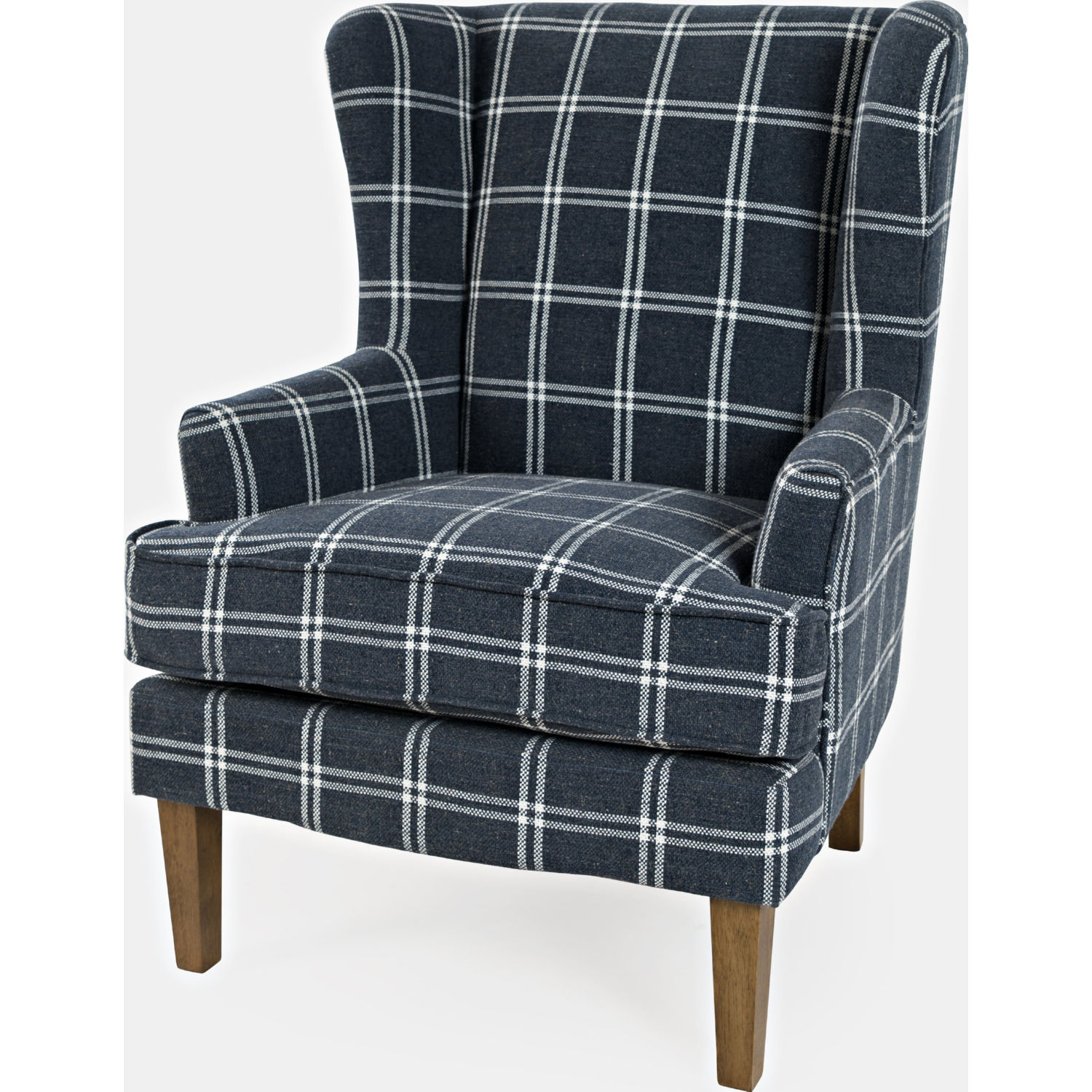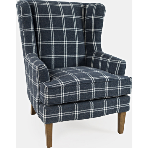 Jofran Lacroix Accent Chair in Navy Blue Plaid Fabric & Wood