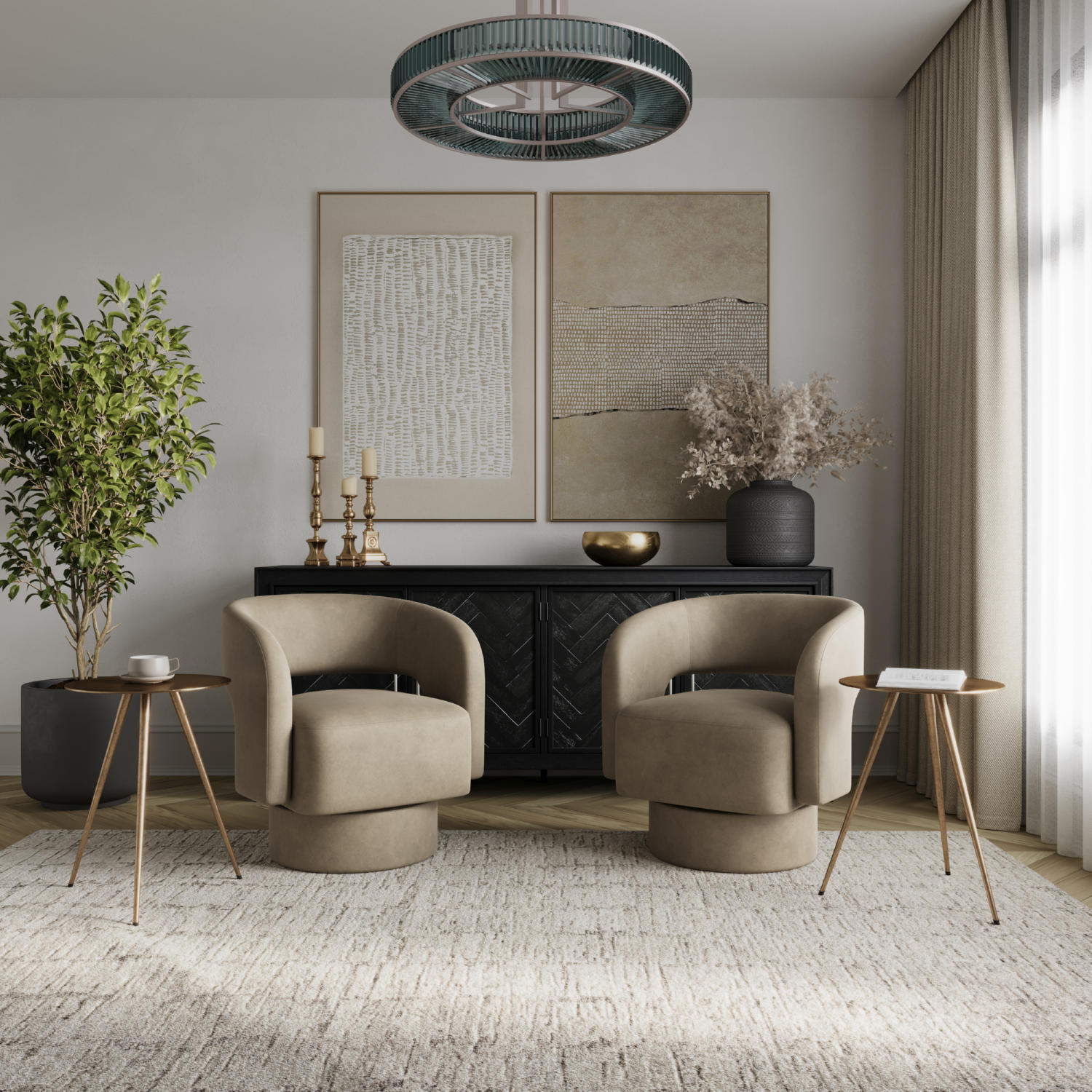 Jofran SUTTON-SW-SAND Sutton Split Back Curved Sculpture Swivel Accent Chair Sand Tan Fabric