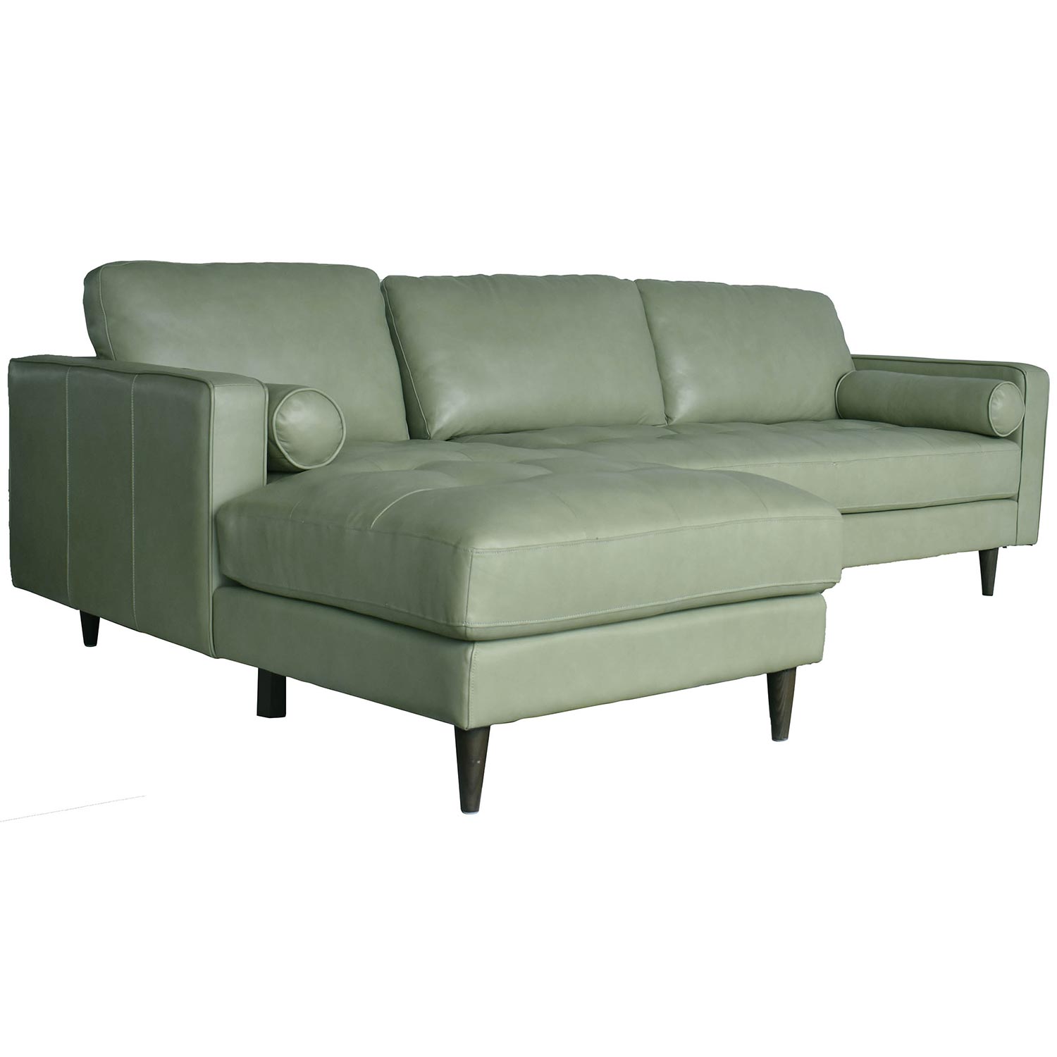 Lea Unlimited Amara Sectional Sofa with Left Side Facing Chaise in Kiwi Green Top Grain Leather