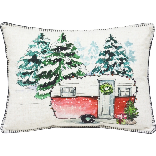 Lea Unlimited 89956 Camping Oblong Pillow White w/Red Camper Fabric