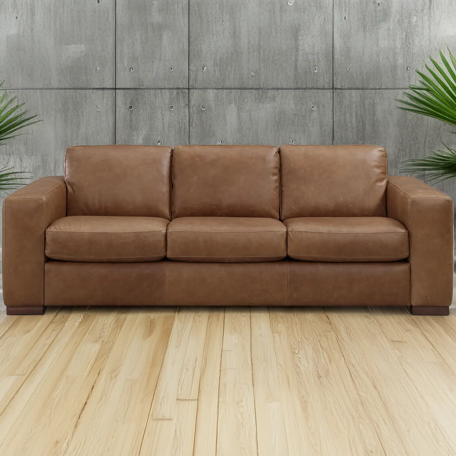 Leather Italia Inglewood Sofa in Vintage Brown Derby Top Grain Leather