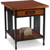 Leick Furniture Ironcraft 58" Corner TV Stand in Mission Oak & Metal