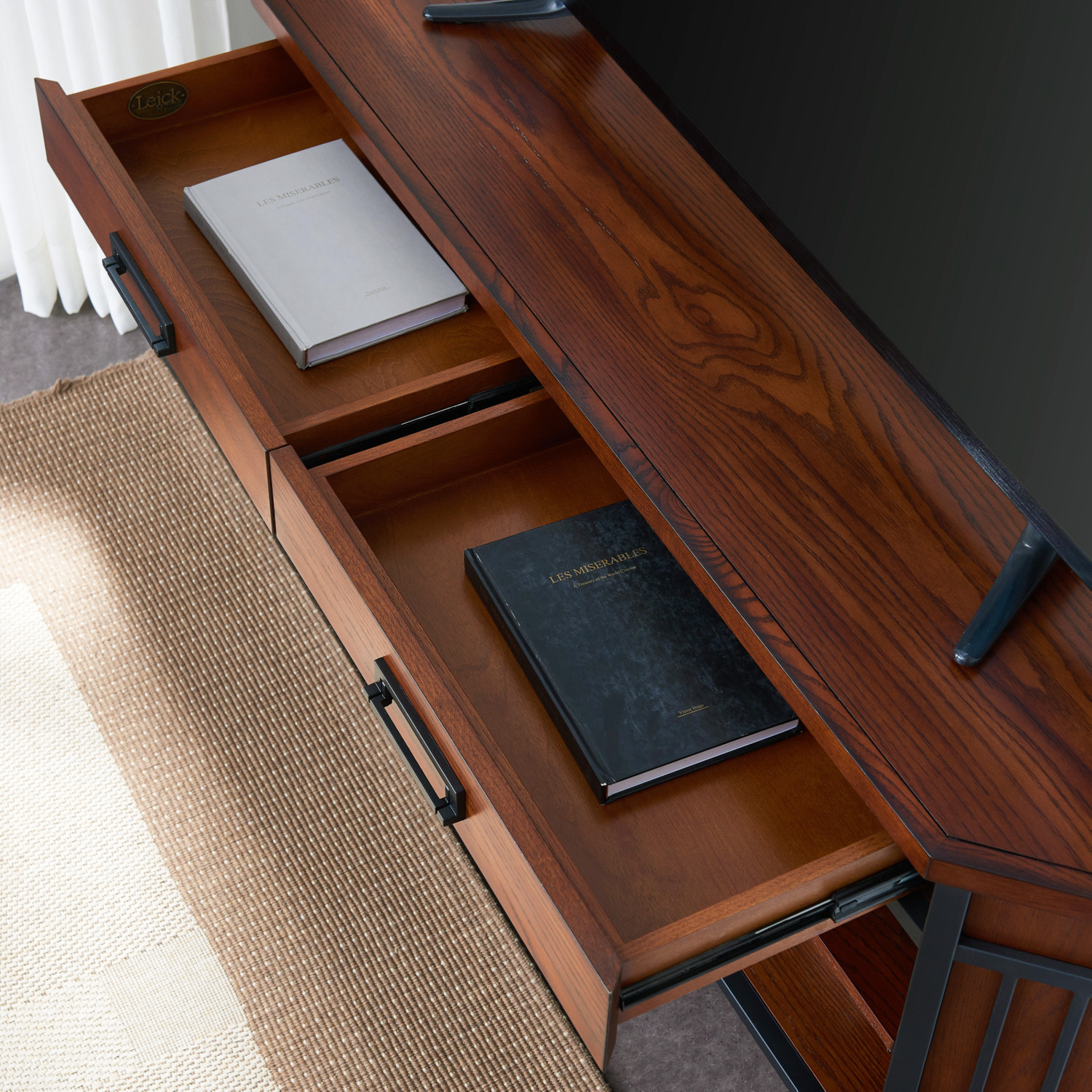 • Burnished medium oak finish