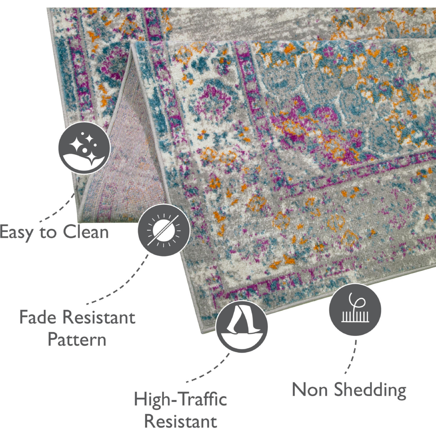 Leick Furniture 596130 Oryn Multicolor Medallion Boho Chic Faded Area Rug 8 x 10 Rectangle