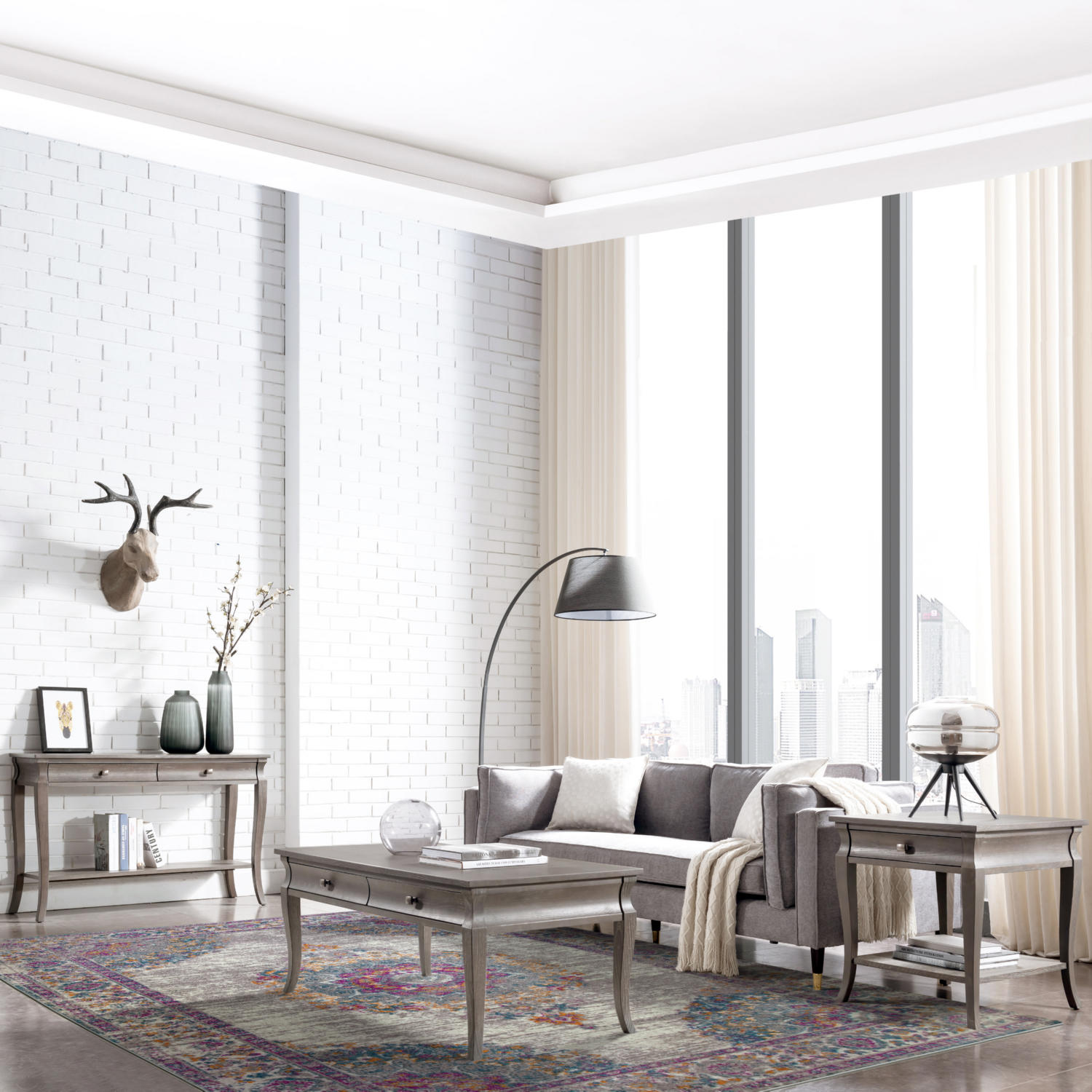 • Muted gray & ivory base w/ medallion design showcasing gold, deep teals & rich ruby