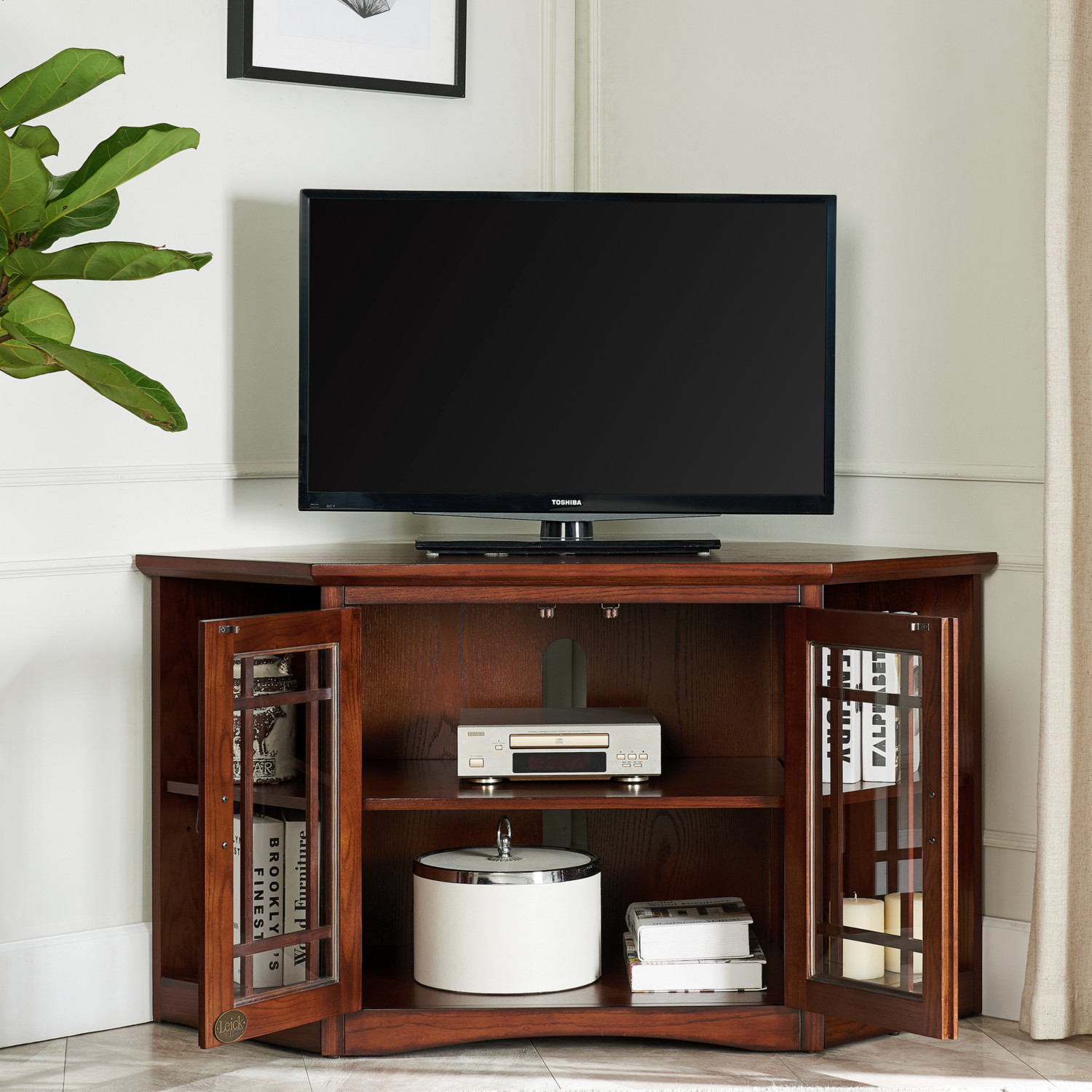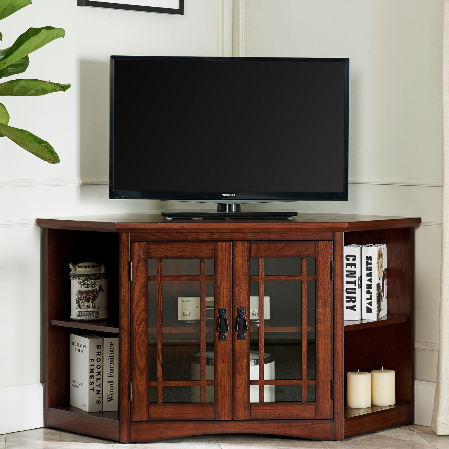 Leick Furniture 82287 Mission 46" Corner TV Stand Bookcase Ends Mission Oak