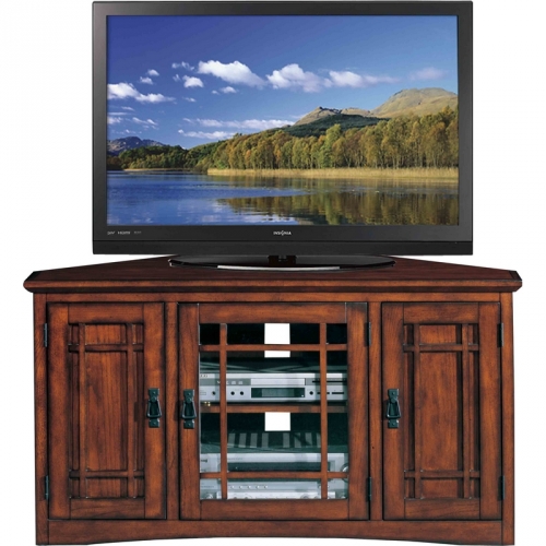 Leick Furniture Riley Holliday Mission 46" Corner Stand Console with Storage in Medium Oak Finish