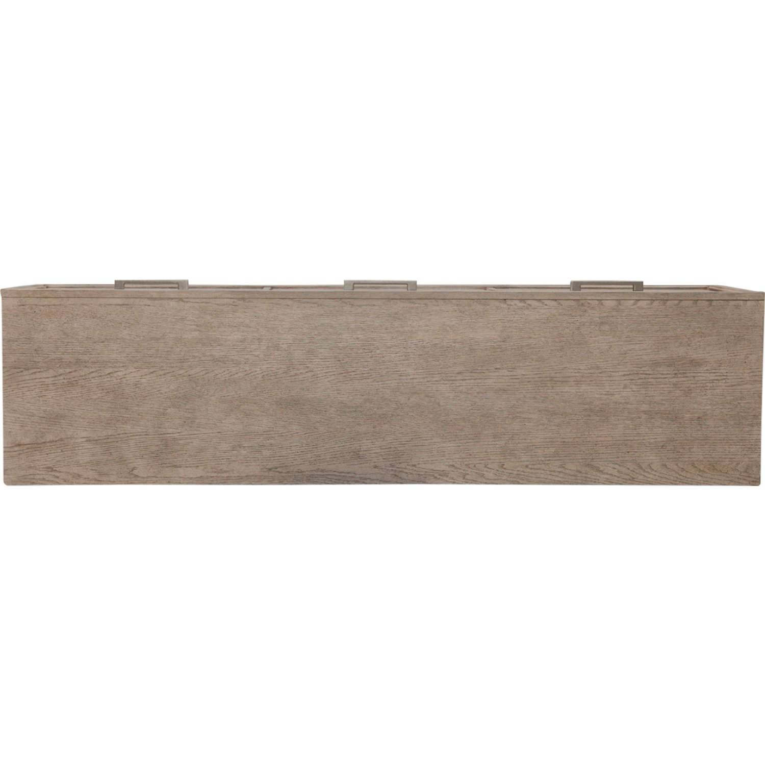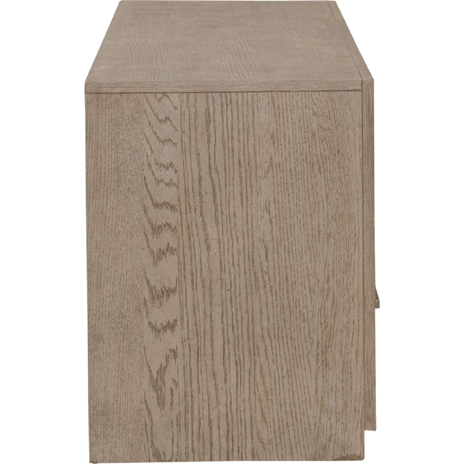 • Crafted in rubberwood solids & split heart white oak veneers in a Wire Brushed Burnished Beige finish