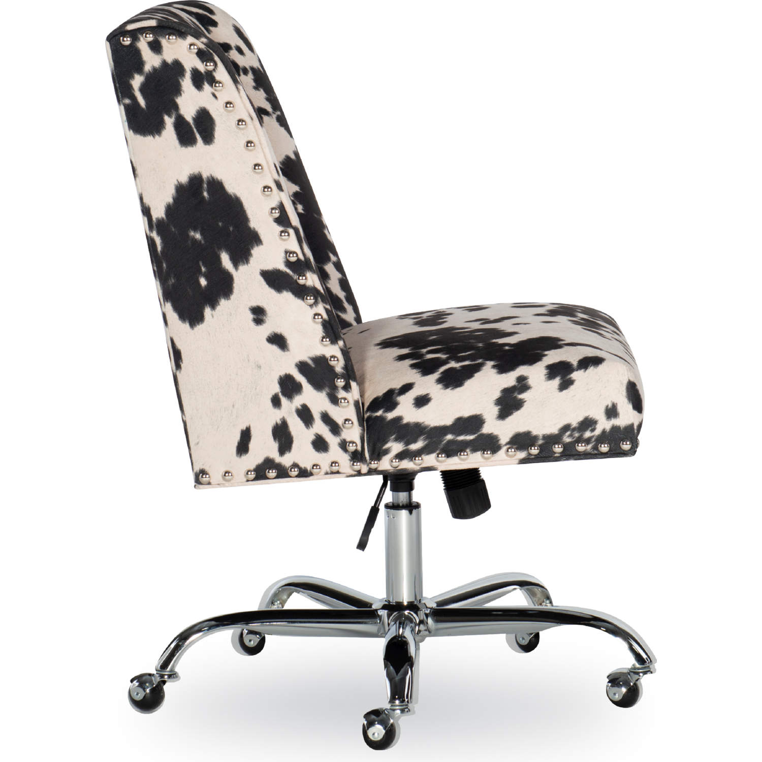 Linon Draper Office Chair in Black & White Cow Print Fabric
